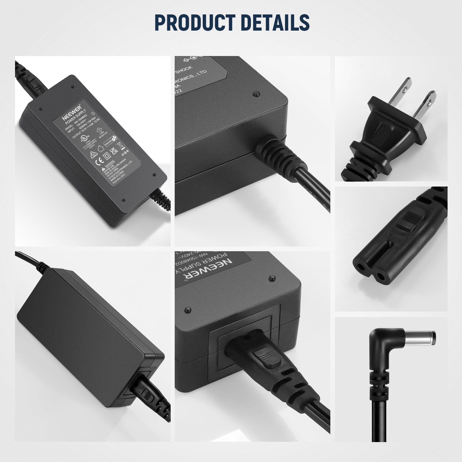 - Amplia compatibilidad : compatible con paneles de luz LED NEEWER: RGB660 RGB168 RGB1200 RGB176 RGB190 RGBC80 RGB960 RGB530 RGB480 BH-20RGB NL660 NL480 660 530 480 LED NL-288ARC NL-360ARC NW48 T140 176 GL1 y GL1 Pro; Luces continuas más nuevas; NEEWER Ring Lights RL-18 RGB18 RL-14 y otros monitores, placas de amplificador de audio, parlantes portátiles, decodificadores de cable, enrutadores inalámbricos, cámaras CCTV, motores de CC, impresoras 3D, proyectos de computadora, concentradores, interruptores, fuentes de alimentación de audio/vídeo y más