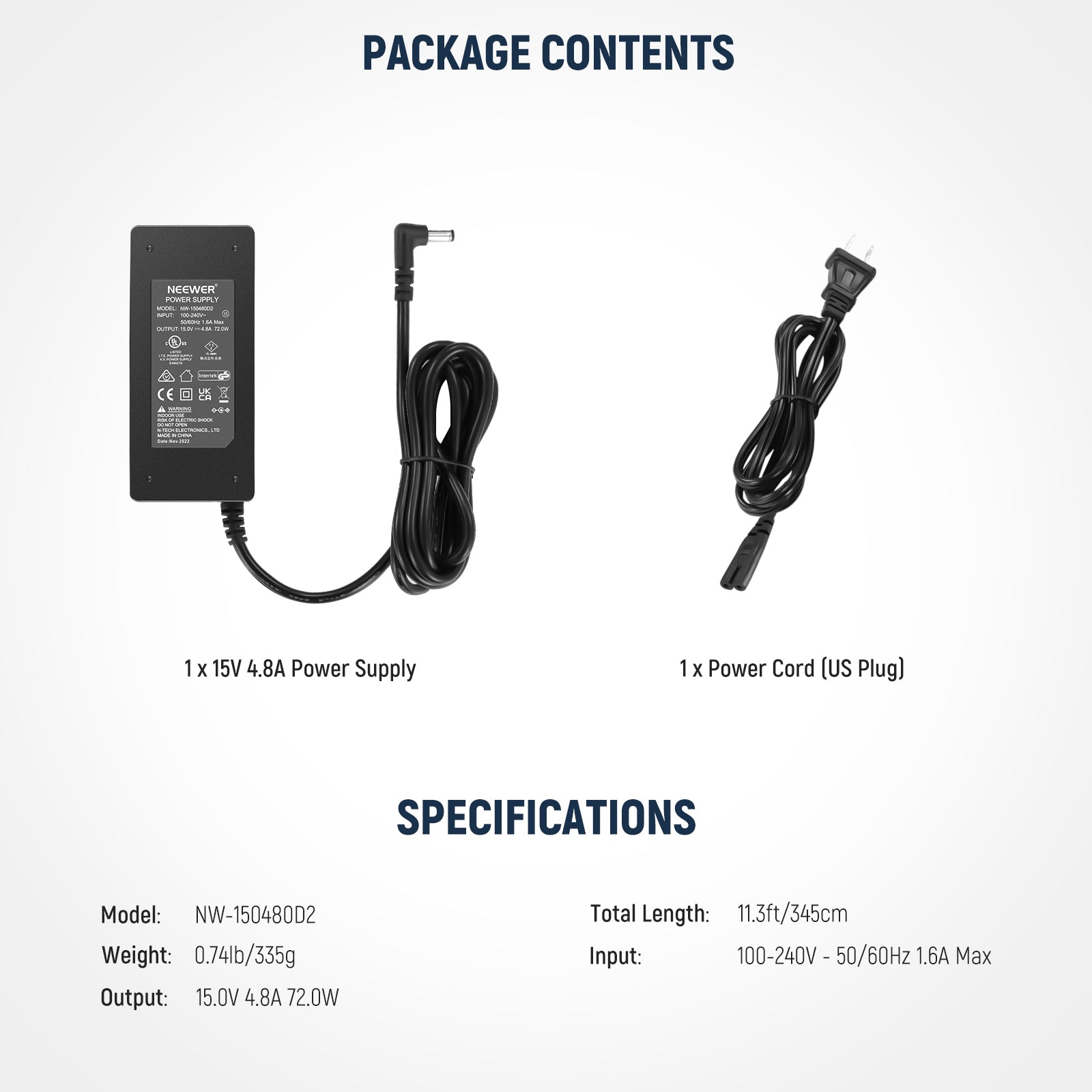 Fuente de alimentación NEEWER 15V 4.8A 72W
