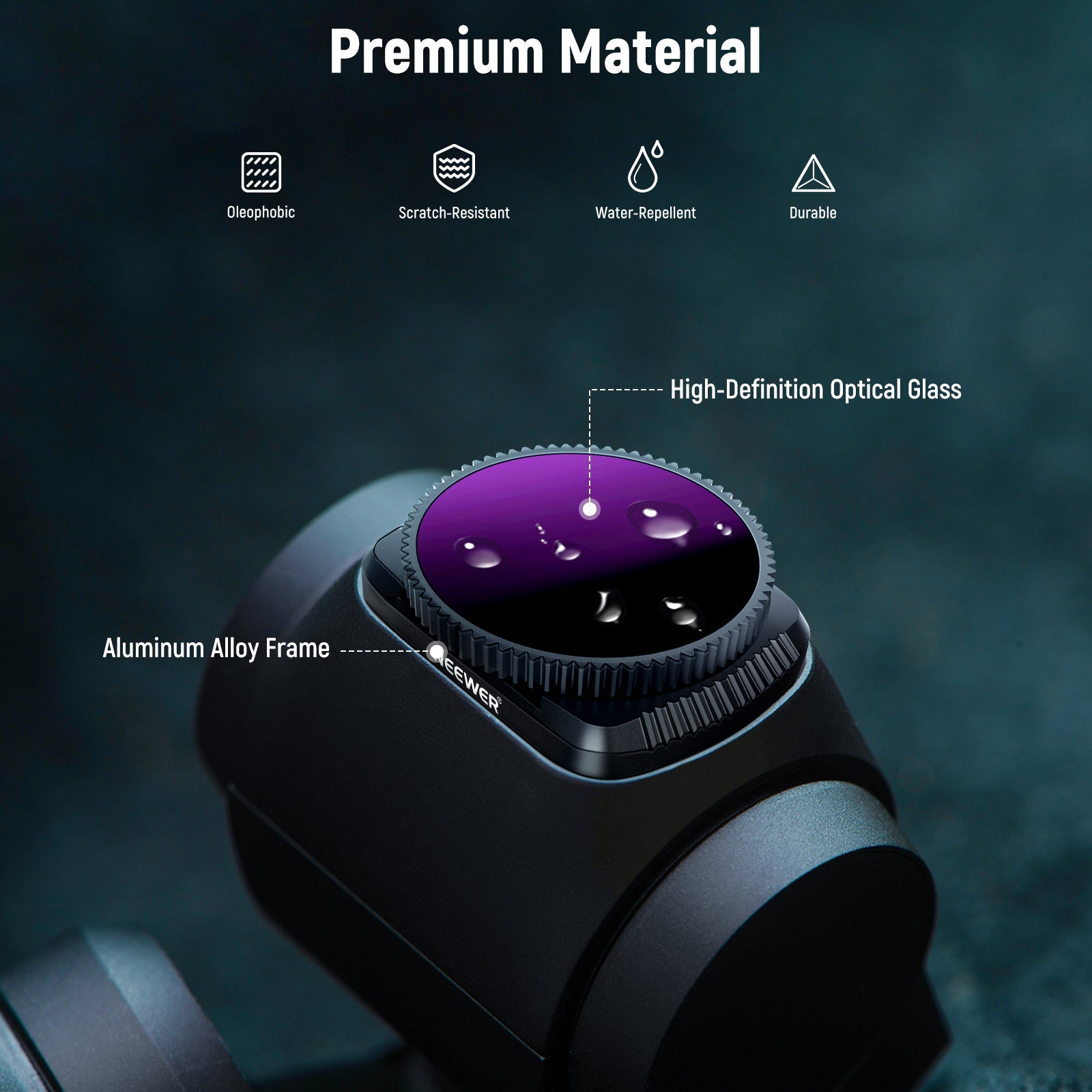 - ULTRA LIGERO : Ligero (0,01 onzas por cada filtro) para que no afecte la función de la lente; También garantiza un índice de refracción bajo, una neutralidad de color excepcional y una transmisión perfecta del objetivo.