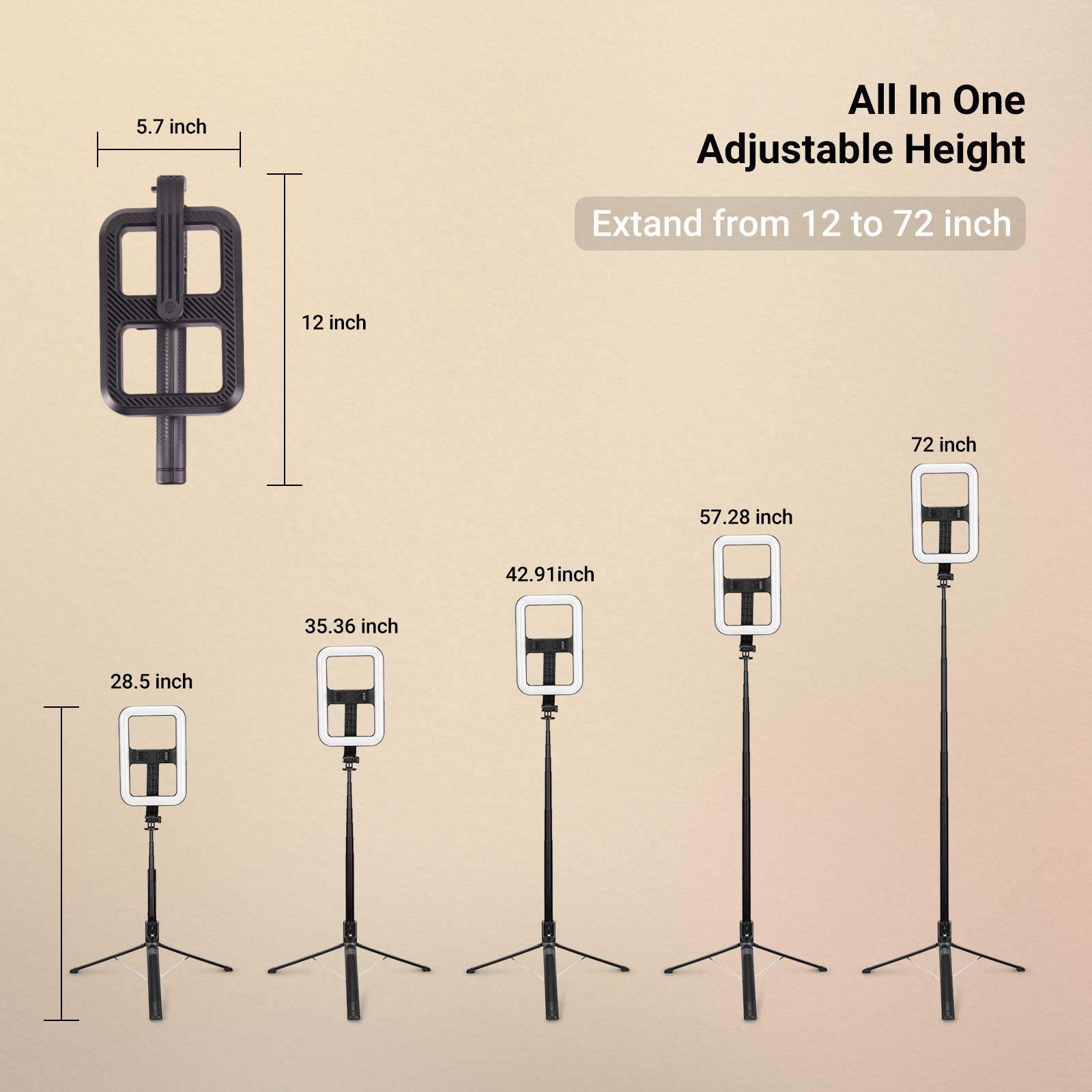 - All in One- Breaking the limits of traditional design, NEEWER NL100B is a wireless selfie ring light with tripod stand that runs on battery and folds down to 12"x5.7"3.1". It extends up to 72", used as a selfie stick or placed on the ground for group shots & content creation