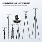 - Ajuste de altura suave y seguro : Con patas plegables de 5 secciones, este trípode de viaje profesional y resistente para smartphone y cámara se extiende hasta 164 cm y se ajusta fácilmente y se bloquea de forma segura mediante cierres abatibles. Sus ajustes flexibles de altura y ángulo permiten composiciones versátiles desde arriba para tomas creativas. Desmonta fácilmente una pata para convertir el trípode en un monópode para fotografía y videografía.