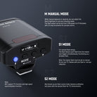 • Manual/S1/S2 Flash Modes- The camera flash supports 3 triggering modes: Manual (M)/S1/S2. M mode lets you adjust flash output precisely from 1/128 to full power (1/1). S1 & S2 are optical slave modes available only in Manual mode for wireless triggering. S1 triggers the flash in sync with the first flash from the master unit, while S2 ignores preflashes and syncs with the second flash for TTL environments, ensuring seamless triggering. Note: The Z120 SE does not support TTL metering itself