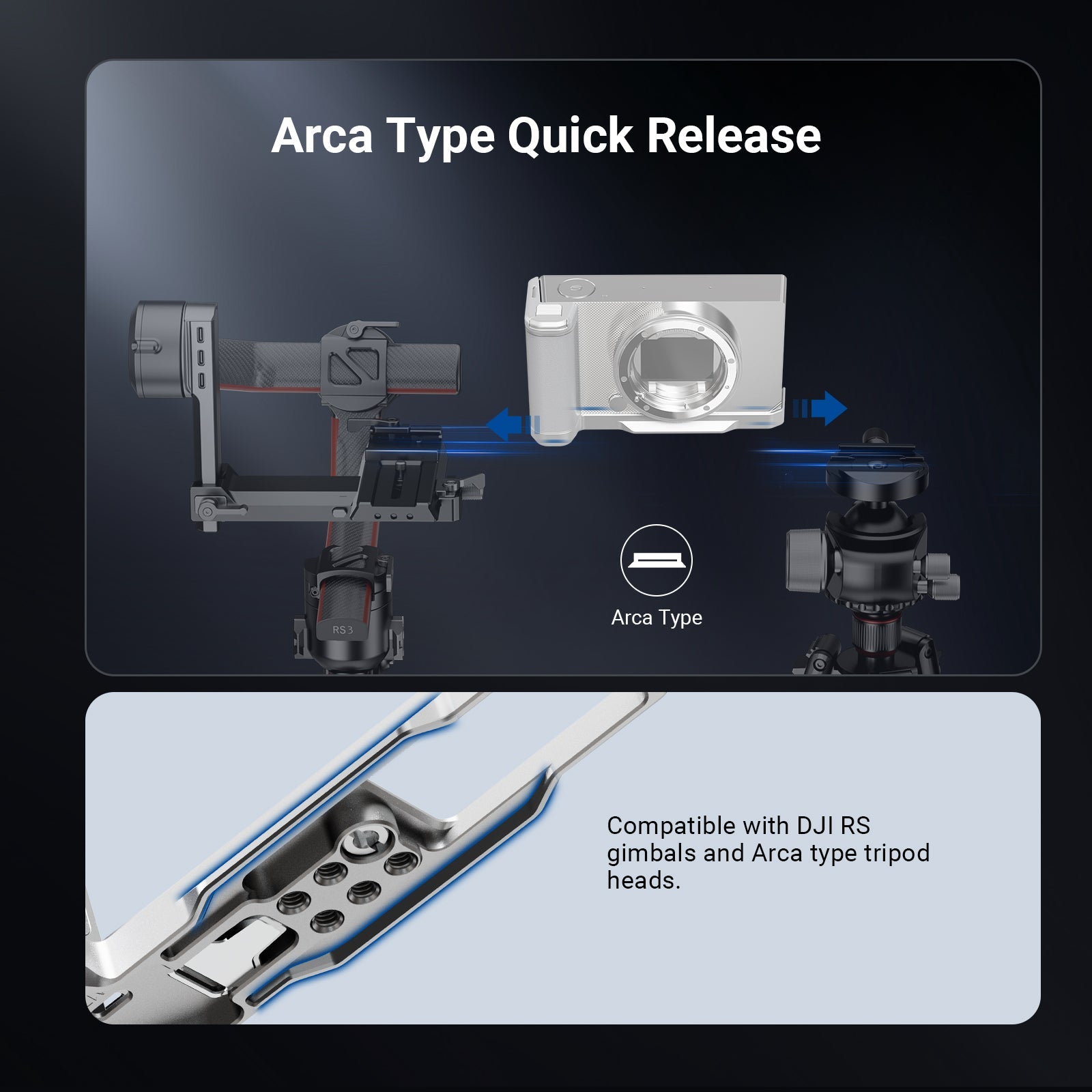 - Arca Type Quick Release- Quick release baseplate bracket is compatible with Arca type tripod heads for swift and secure attachment