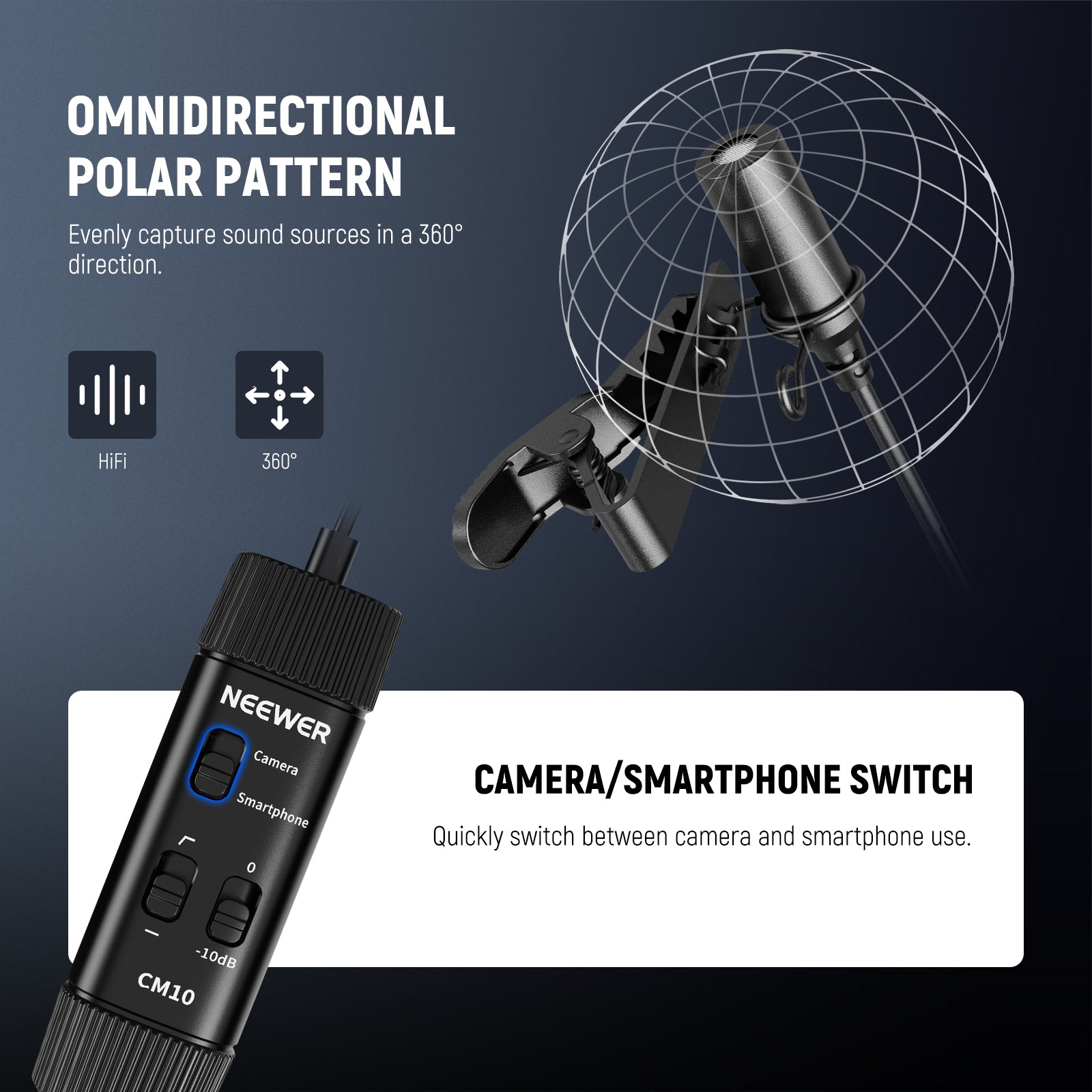 Micrófono de solapa NEEWER CM10 Plug & Play TRRS de 3,5 mm para cámara/teléfono inteligente