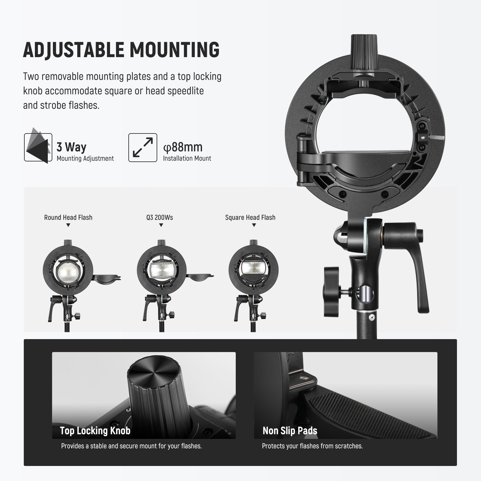 Soporte de montaje Bowens tipo S NEEWER CRB1 para flash de cabezal cuadrado redondo