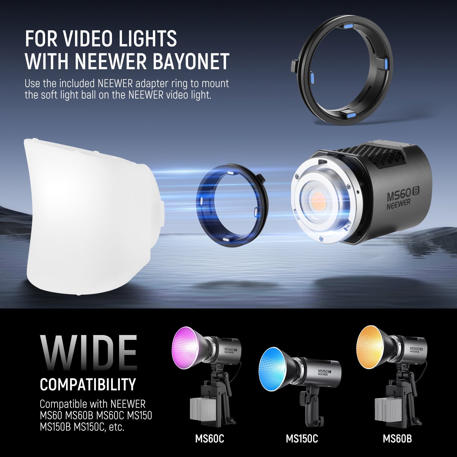 - Montaje seguro : con los 3 tipos de anillos adaptadores, con un simple giro se puede conectar sin problemas este difusor de luz suave a los flashes Speedlite comunes o a las luces de video continuas con soporte NEEWER. El anillo adaptador de cabezal redondo viene con una hebilla incorporada y el de los flashes de cabezal cuadrado con dos perillas de ajuste, todos son ajustables, lo que garantiza un ajuste perfecto para diferentes tamaños de cabezales de flash. El anillo adaptador de cabezal de flash cuadrado también viene con una zapata fría incorporada para expansión.