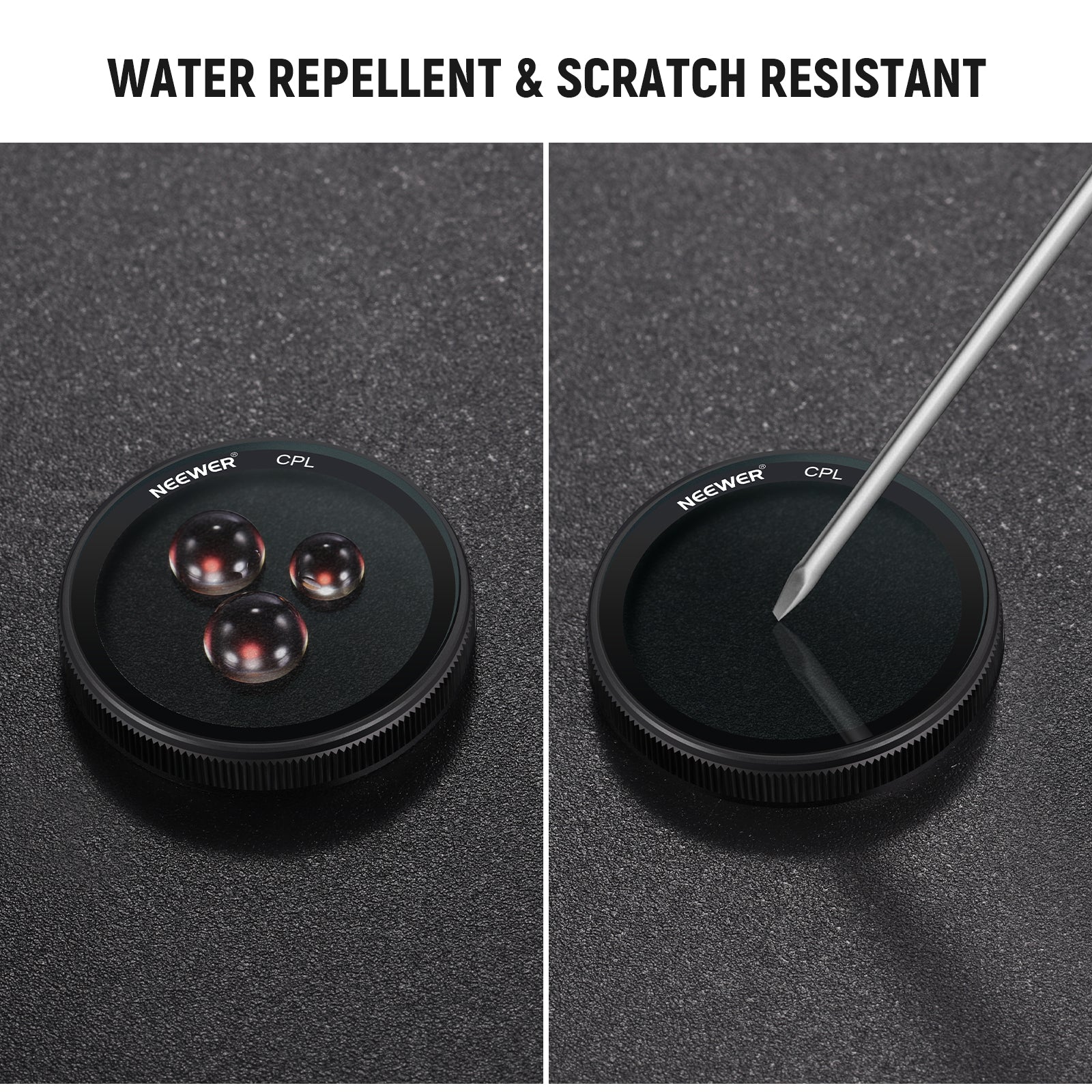 - Reduce los reflejos de superficies no metálicas : el filtro polarizador circular minimiza los reflejos de las ventanas del automóvil, el agua y las superficies lisas, de manera similar a un filtro polarizado. Reduce la interferencia de luz no deseada y ayuda a solucionar los problemas de deslumbramiento de una cámara de tablero, lo que hace que las señales de tránsito, las matrículas y otros detalles sean más claros para lograr grabaciones más confiables en diversas condiciones de iluminación.