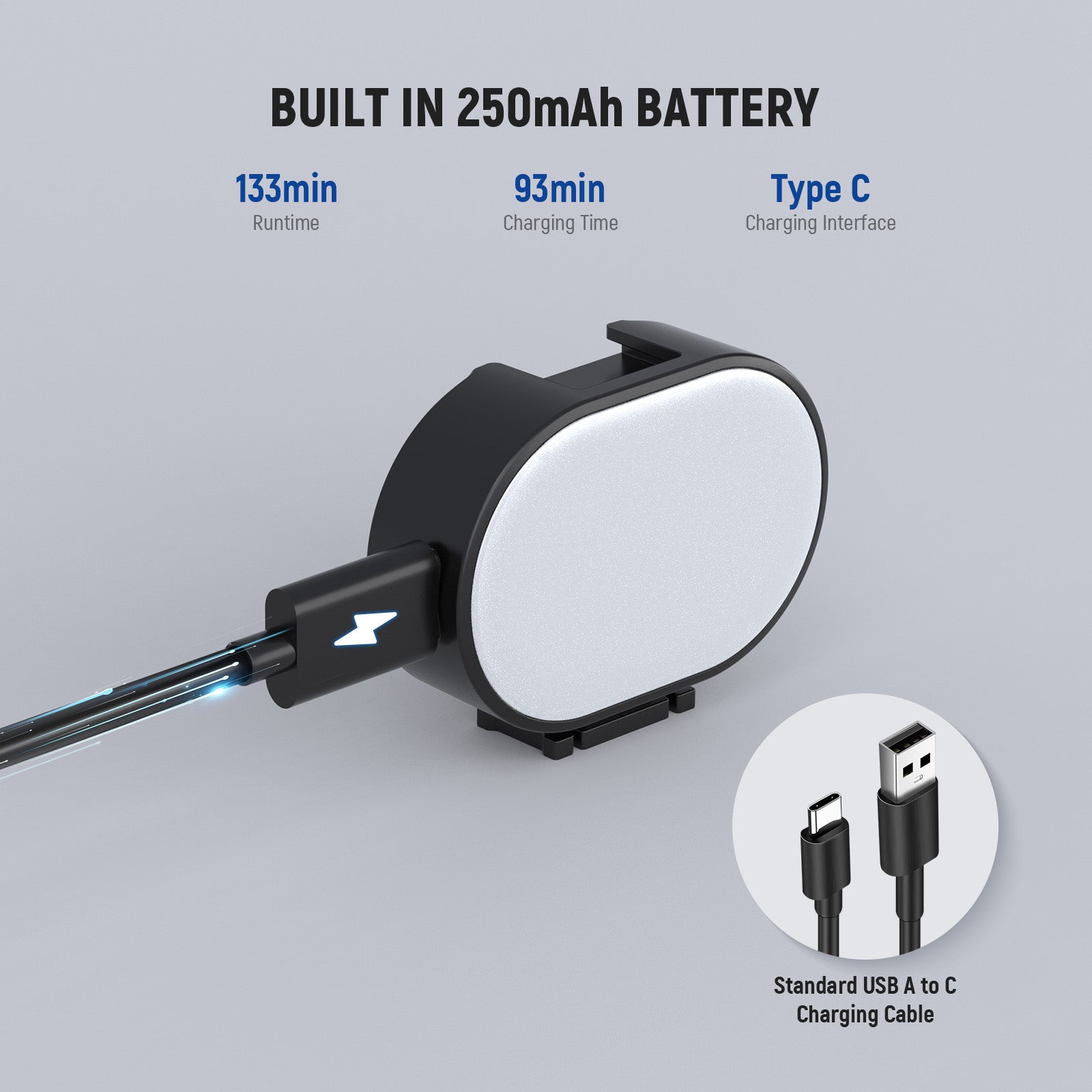 - 133min Long Runtime & Quick USB C Charging- The built in 250mAh rechargeable battery provides continuous lighting for up to 2 hours and 13 minutes at full brightness on a full charge, fully recharging in 93min via a portable charger, laptop, car charger, or any other USB power source using the included USB C charging cable. Perfect light for outdoor content creation, without the hassle of power issues on the go