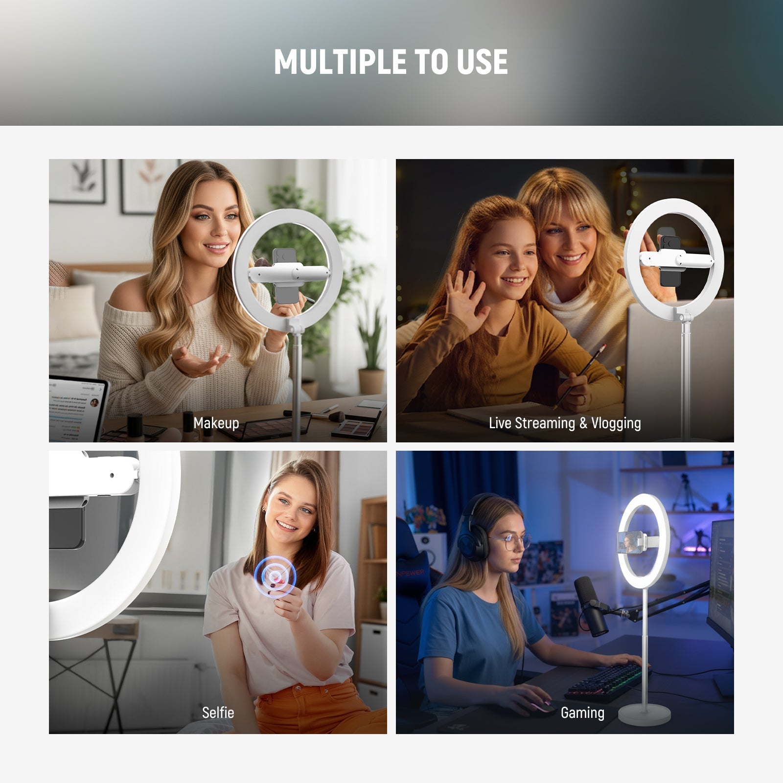 - Ideal for Phone Photography- A 360° universal phone mount secures your phone at the center of the portable LED ringlight, delivering direct, diffused soft light for optimal photo and video quality in portrait & landscape modes. This large ring light with stand for video recording selfie filming vlogging, is compatible with iPhone 16 15 Pro Max Plus Samsung S24 Ultra cell phone, etc. Essential accessories and must have phone camera lighting gear for social media content creators and influencers