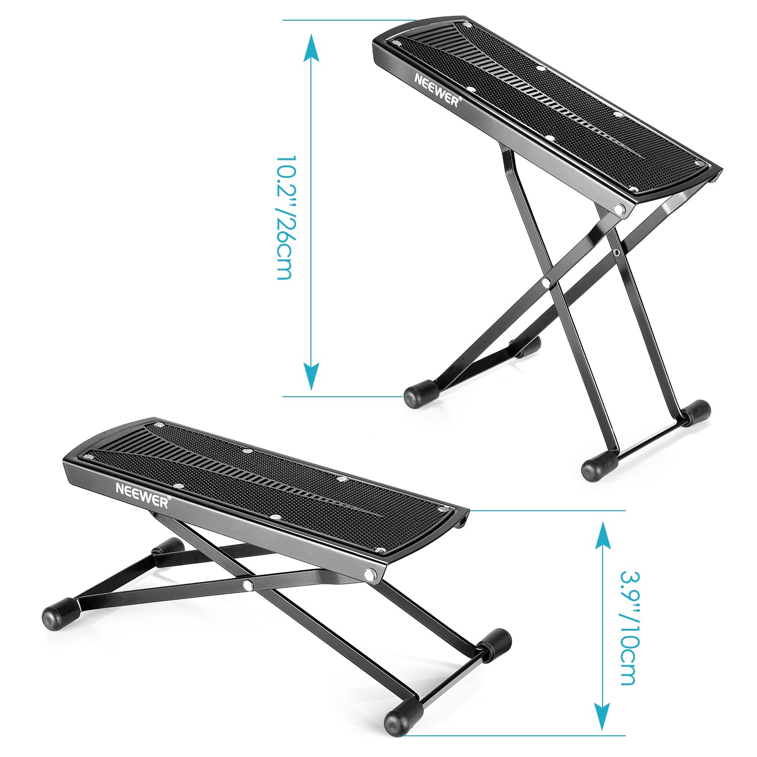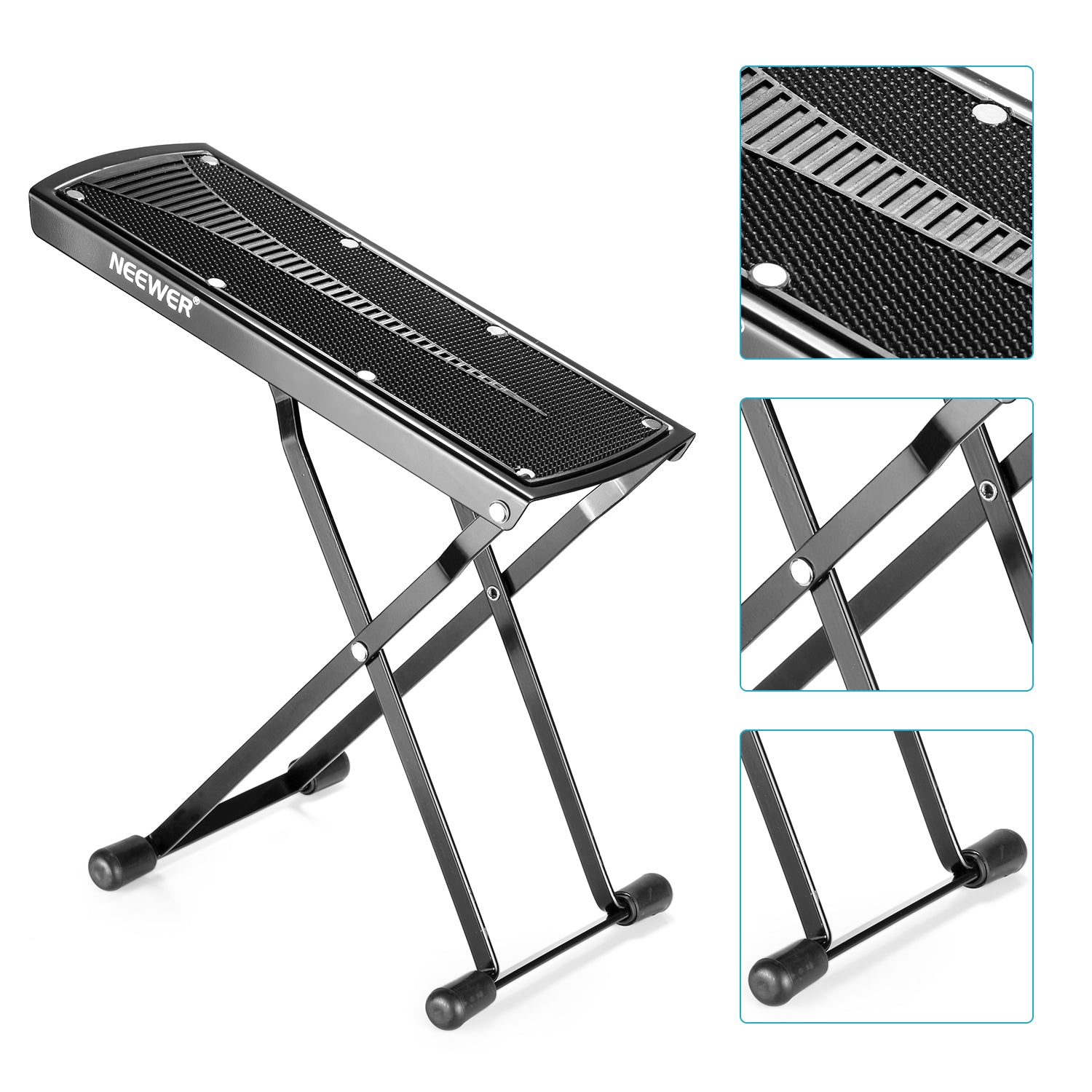 - El reposapiés de guitarra ajustable en altura Neewer ofrece a los instrumentistas la forma más cómoda de practicar melodías.