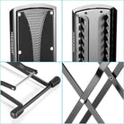 - Bien construido con acero bastante resistente y diseñado para plegarse.