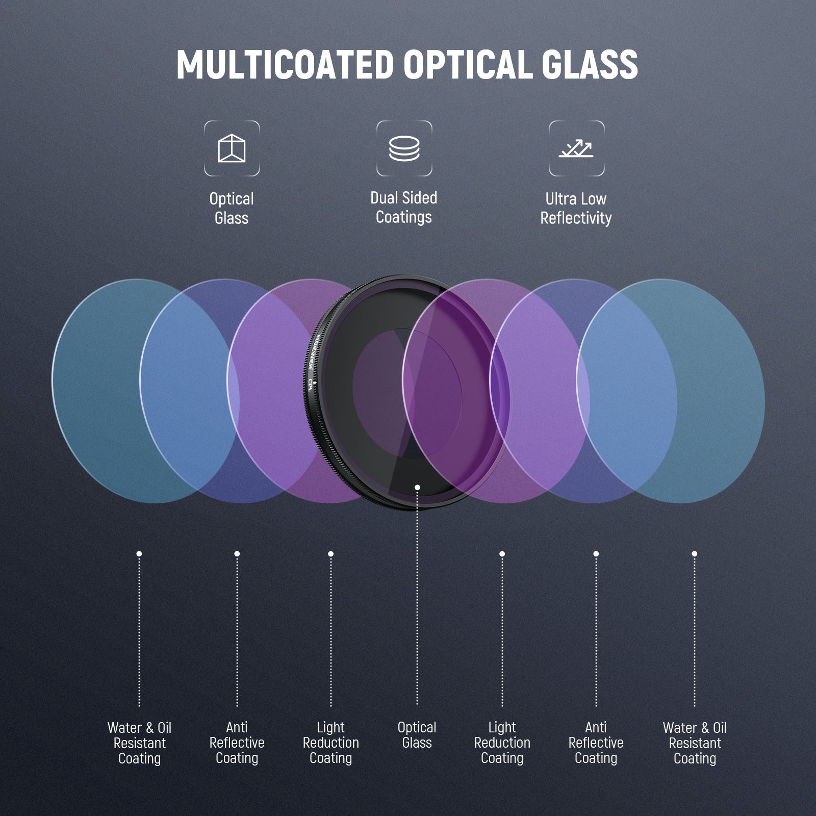- Minimal Glare & Rich Color- Adjustable CPL (circular polarizing) filter minimizes reflections on glass, water, and other nonmetallic surfaces while improving contrast and saturation. Rotate the frame to adjust polarization effects