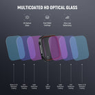 - Multicoated Optical Glass- The premium optical glass with multiple resistant coatings ensures sharp imaging while withstanding water, fingerprints, and scratches during everyday use. A cleaning cloth is included for upkeep