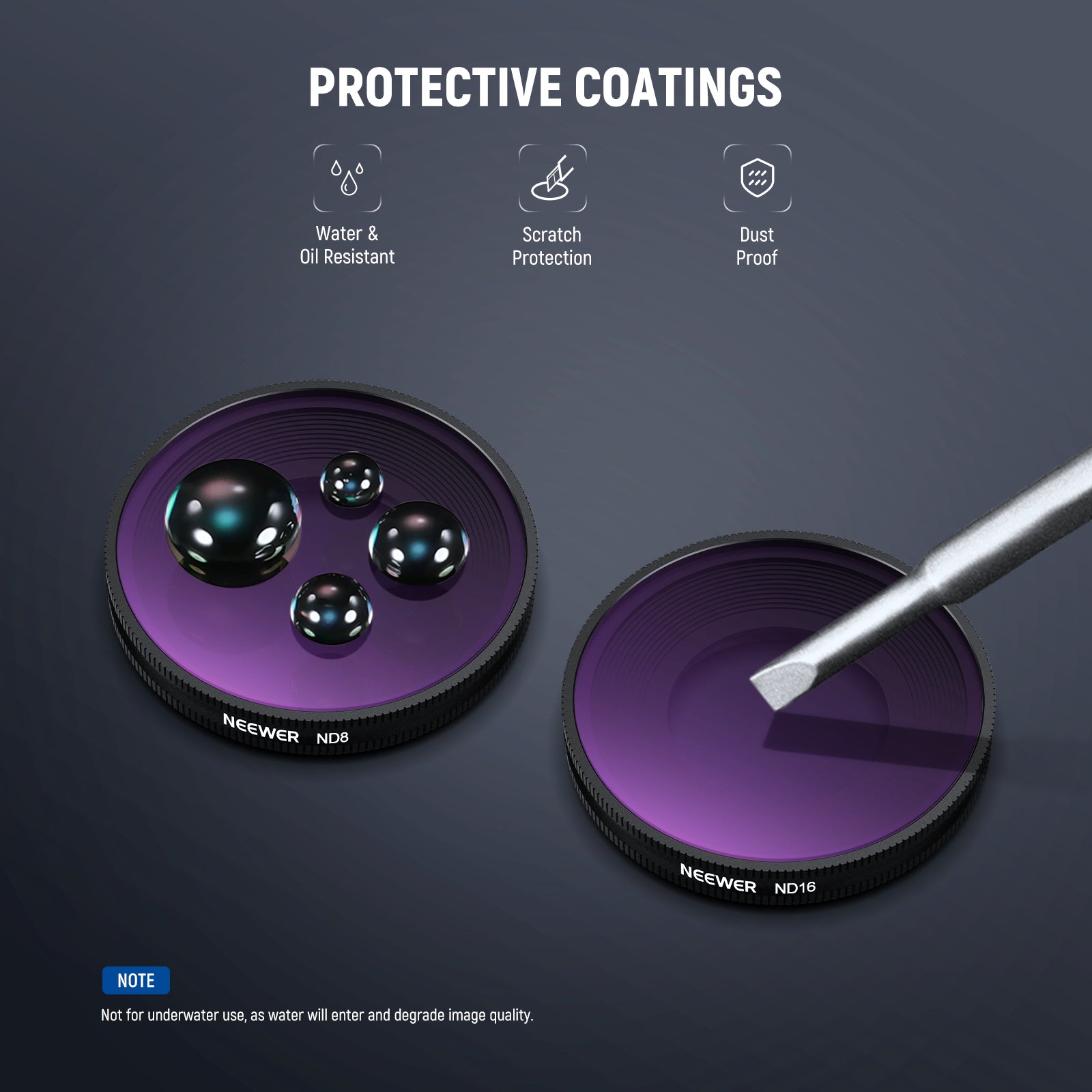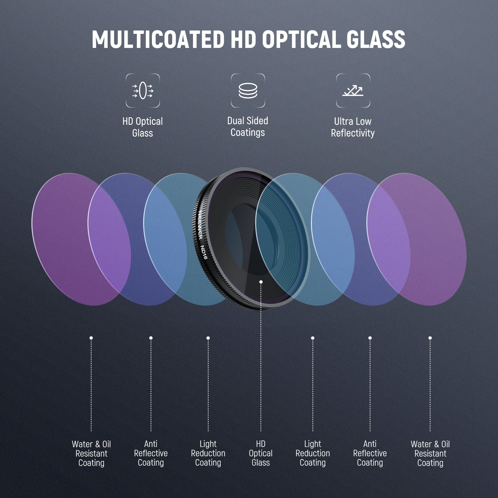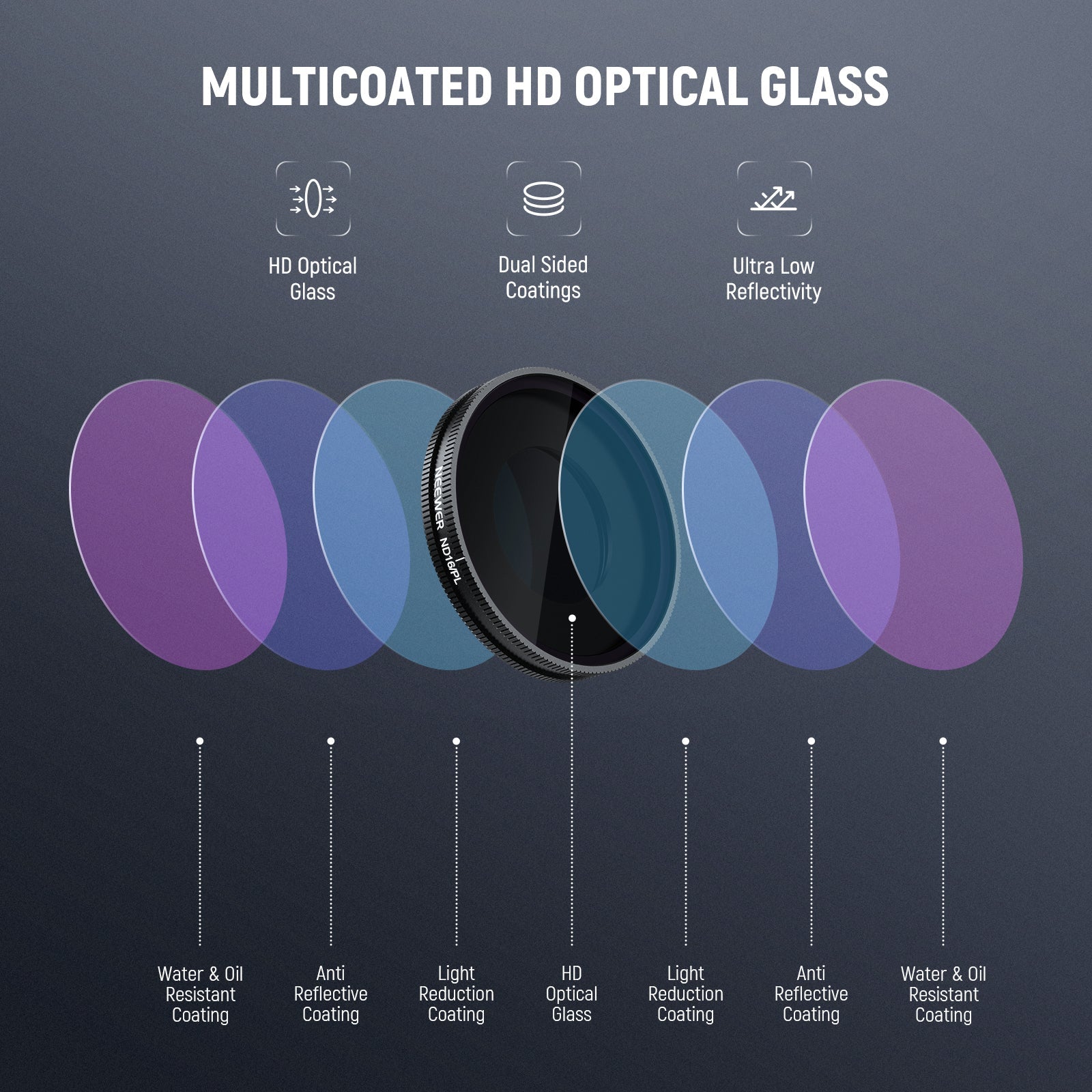 - Flexible Exposure Balance- Neutral density filters reduce light by 3, 4, 5, and 6 stops respectively to prevent overexposure in different lighting conditions and allow you to capture rivers, waterfalls, and light trails with smooth motion blur