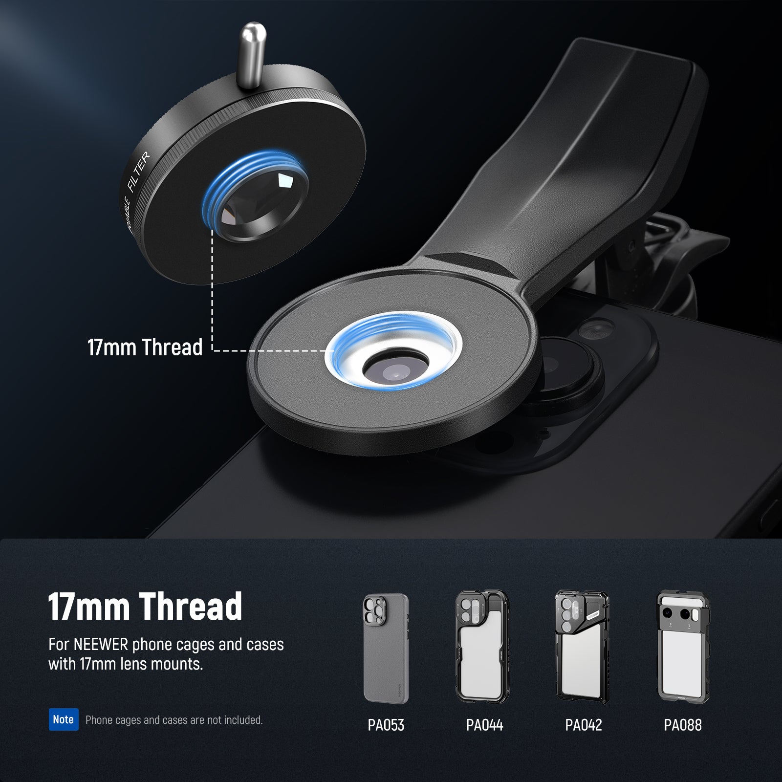 • Pair with Phone Cages/Cases- For better results, pair it with our 17mm threaded Backplates (PA018/PA019), Phone Cages (PA043/PA044 for 15 Pro/15 Pro Max, PA073/PA074 for 16 Pro/16 Pro Max, PA042/PA082 Galaxy S24 Ultra/S25 Ultra, PA091 for Xiaomi 15 Ultra), and Phone Cases (PA083/PA084 for 16 Pro/16 Pro Max, PA053/PA054 for 15 Pro/15 Pro Max, PA052/PA092 for Galaxy S24 Ultra/S25 Ultra, and more). Note: All sold separately