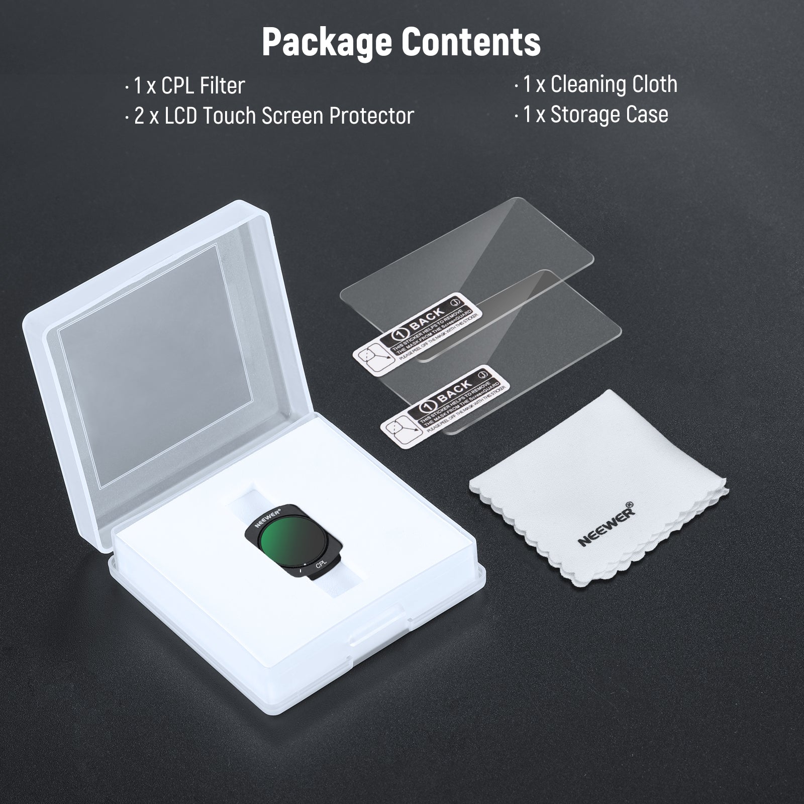 - Totalmente compatible con DJI Osmo Pocket 3 : el filtro polarizador circular magnético NEEWER es compatible con DJI OSMO Pocket 3 y se fija de forma instantánea y segura, lo que mejora significativamente la calidad de imagen de tu dispositivo, tanto al grabar como al grabar vídeos. Nota: Si se aplica una película protectora a la lente, podría interferir con el almacenamiento del estabilizador.