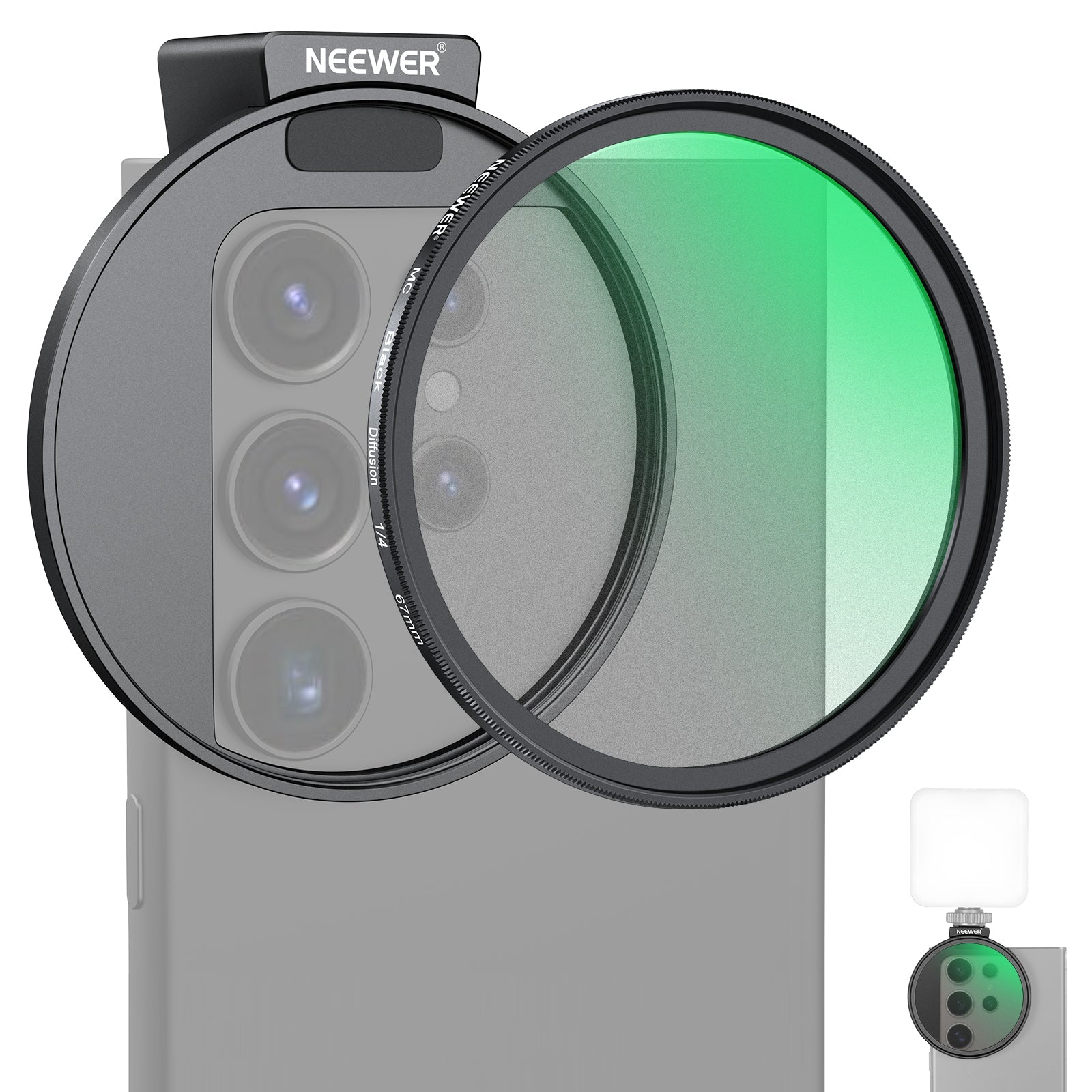 Filtro difusor negro NEEWER FL-88 de 67 mm y 1/4" y clip para teléfono con zapata fría