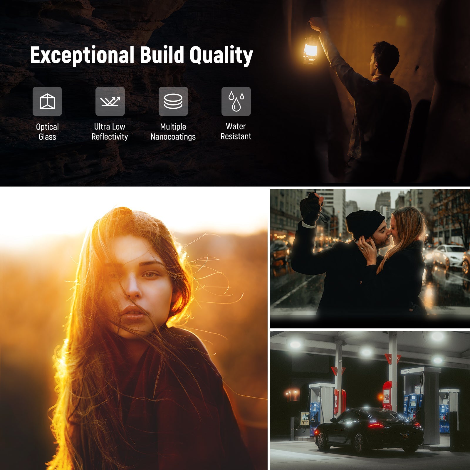 - Vidrio óptico con revestimiento múltiple : los filtros están hechos de vidrio óptico de alta calidad con un tratamiento de revestimiento múltiple de doble cara para garantizar una calidad de imagen superior y reducir el reflejo y las imágenes superpuestas.