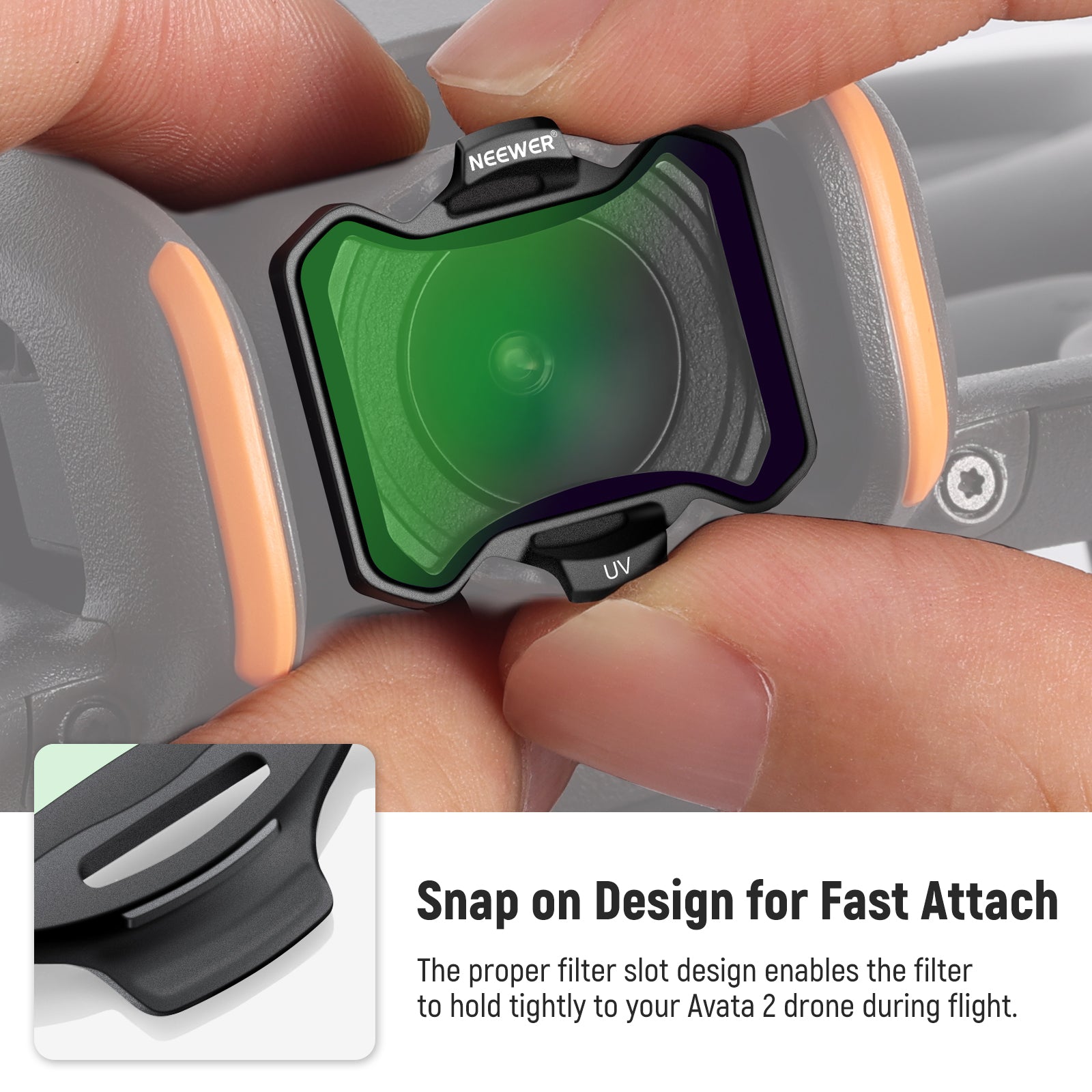 - Totalmente compatible con Avata 2 : el juego de filtros ND&UV&CPL de NEEWER compatible con DJI Avata 2 incluye filtros ND8, ND16, ND32, ND64, filtro CPL y filtro UV, lo que le permite controlar con precisión la apertura y la velocidad de obturación, protegiendo su lente del polvo y los rayones y presentando una reproducción de color realista. Monte estos filtros en la lente de su dron, mejore el control de la exposición en diferentes condiciones climáticas para brindar fotografías mágicas y emocionantes con colores naturales.