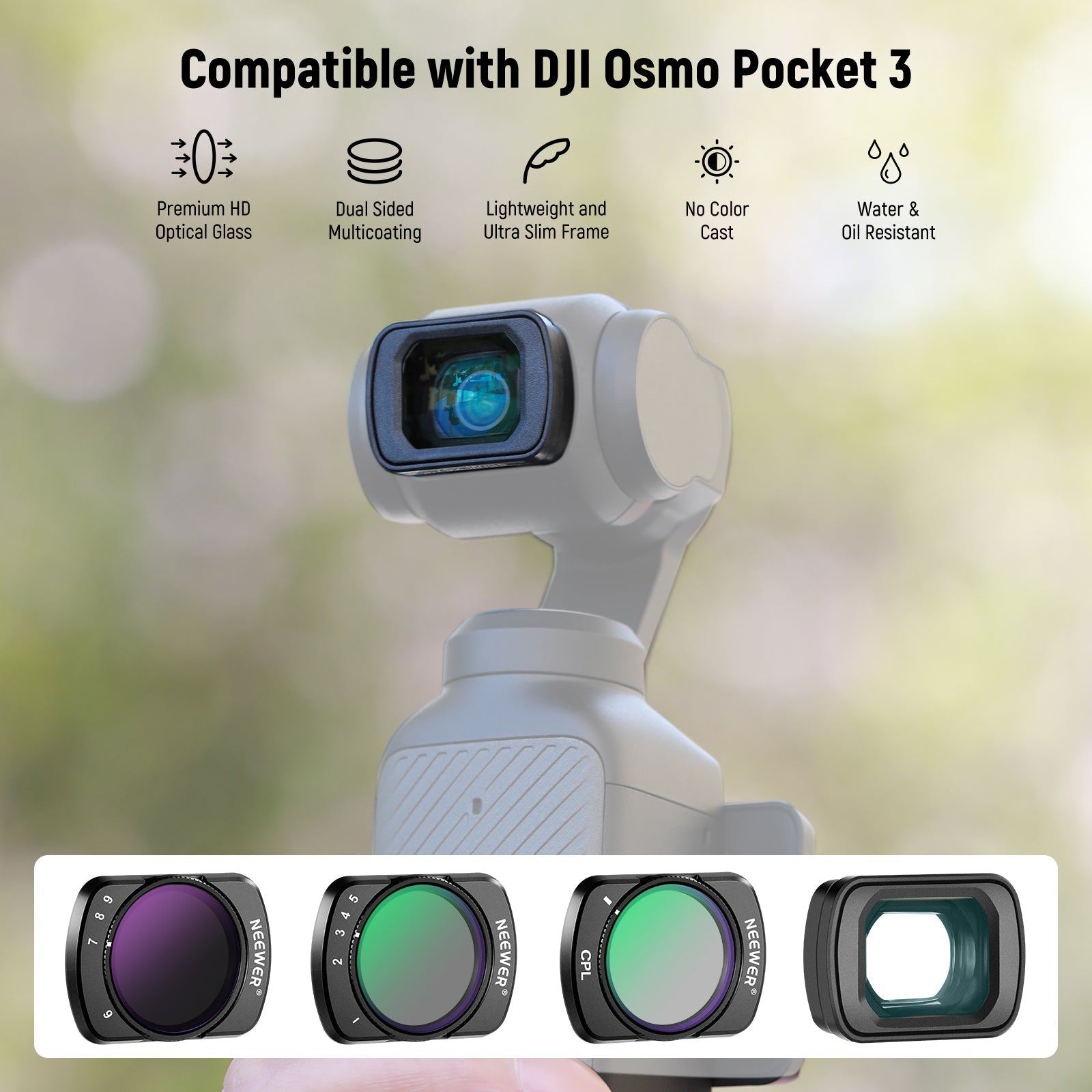 Juego de filtros ND variables NEEWER FL-B15 con lente gran angular de 0,75X para DJI Osmo Pocket 3