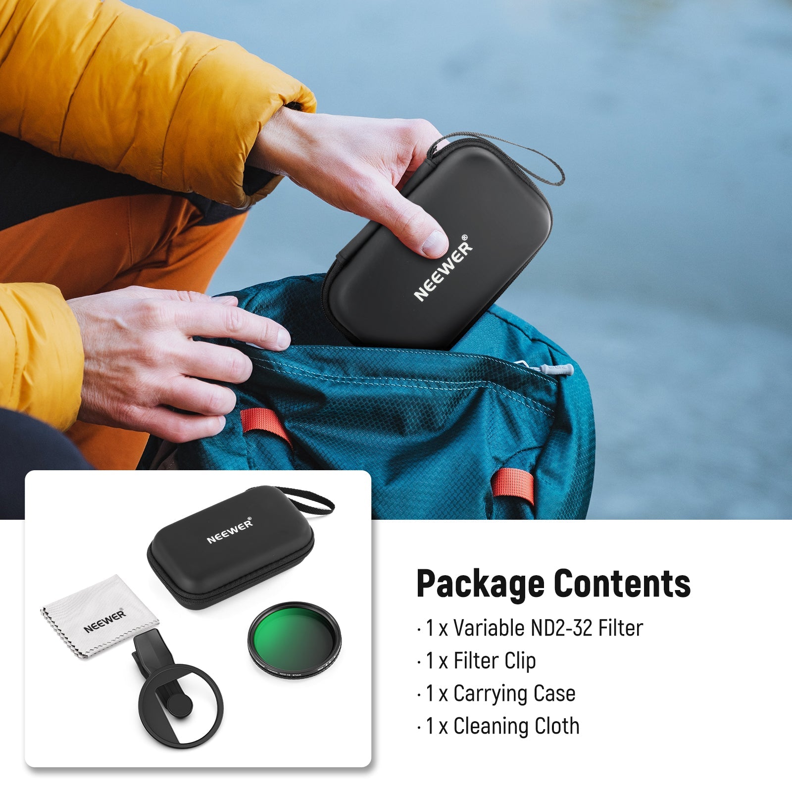 - Kit de filtros versátil para teléfono : el kit de filtros con clip NEEWER de 67 mm eleva tu equipo de fotografía móvil al nivel de una cámara DSLR, convirtiéndose en un accesorio esencial para creadores de contenido e influencers. Ideal para fotografía de viajes, callejera, de paisajes y time-lapse, así como para bodas y redes sociales. Incluye un estuche compacto y portátil para guardarlo y transportarlo fácilmente, perfecto para llevar accesorios de celular dondequiera que vayas.