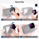 - Instalación segura con giro : retira la lente existente de tu cámara de acción. Alinea el filtro con la posición de la lente y luego gíralo suavemente para asegurarlo. La construcción liviana no te pesará mientras disparas mientras estás en movimiento.
