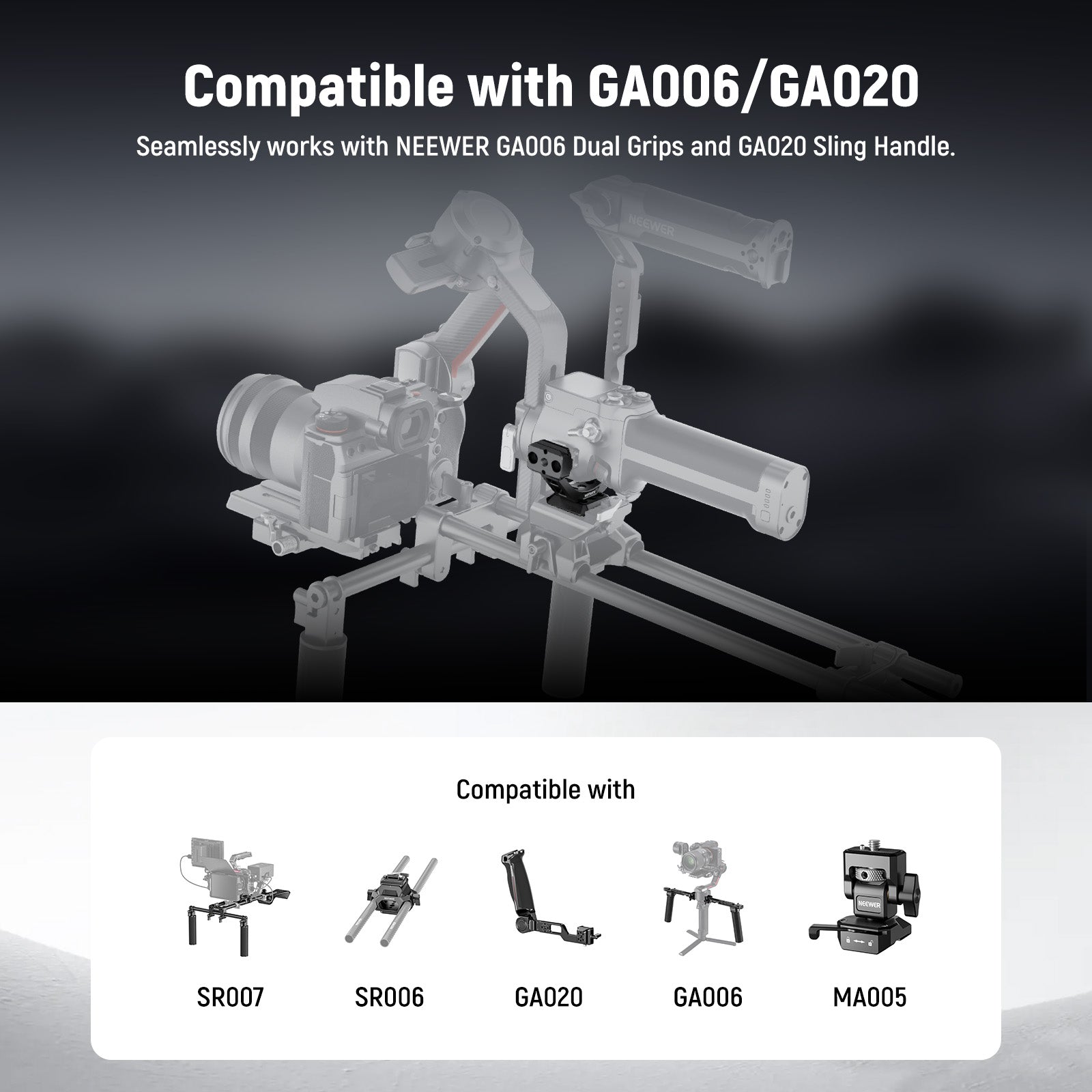 - Encuentre más productos NEEWER : combínelo con el soporte de hombro SR007, la placa base LWS de 15 mm SR006, el asa de bandolera GA020, las empuñaduras dobles GA006, el soporte de monitor MA005 y otros productos NEEWER para mejorar su creación de contenido.