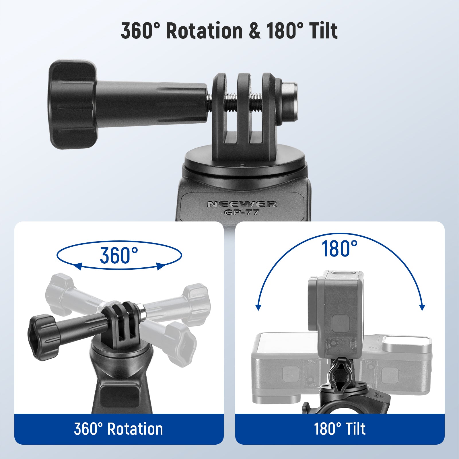 - 360< Rotation & 180< Tilt- The strap mount enables 360< rotation and 180< tilt using the locking screw, ensuring your action camera is securely positioned for flexible angles, and enhancing the shooting experience