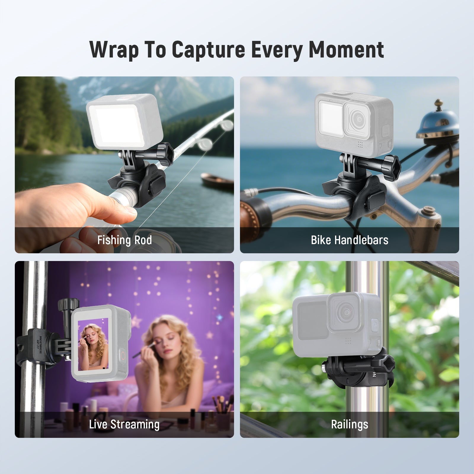 - Easy & Quick Setup- Simply pull the elastic strap open, wrap it around the support, and thread it through the fixed hole to secure the flexible clamp mount in place - it is a breeze!