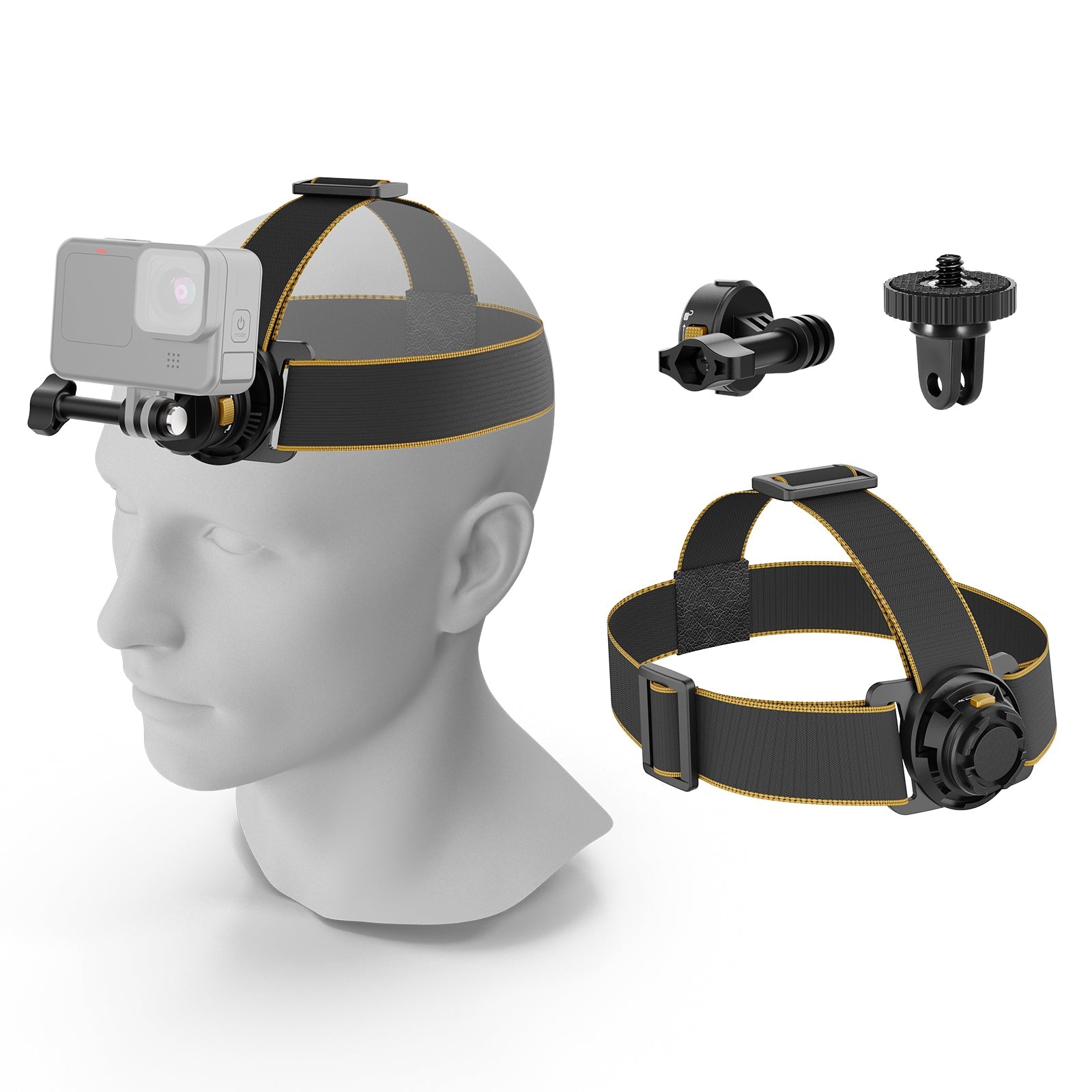 - Correas flexibles y ajustables : este soporte para la cabeza se monta fácilmente en la cabeza o en el casco gracias a la banda elástica flexible y la correa superior. Ajuste el tamaño mediante hebillas de ajuste y seguras, que se adaptan a distintas circunferencias de cabeza.