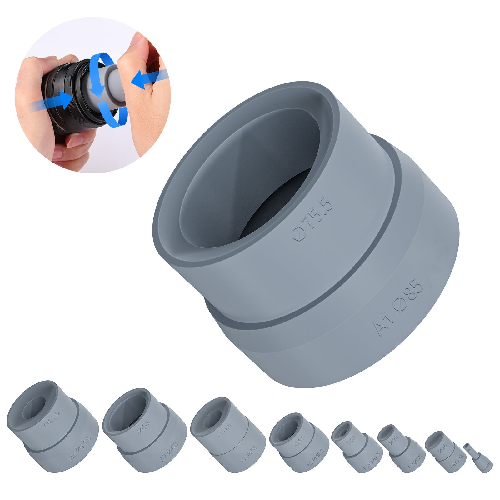 - Varios tamaños para una amplia compatibilidad : este kit ofrece anillos de fricción de silicona de entre 8 mm y 83 mm de diámetro, que se adaptan a casi todos los tamaños de lentes. Incluye 8-16 mm, 23-33 mm, 26-29 mm, 27-36,5 mm, 42-48,3 mm, 51-54 mm, 57-66 mm, 61,5-71,5 mm, 75,5-85 mm