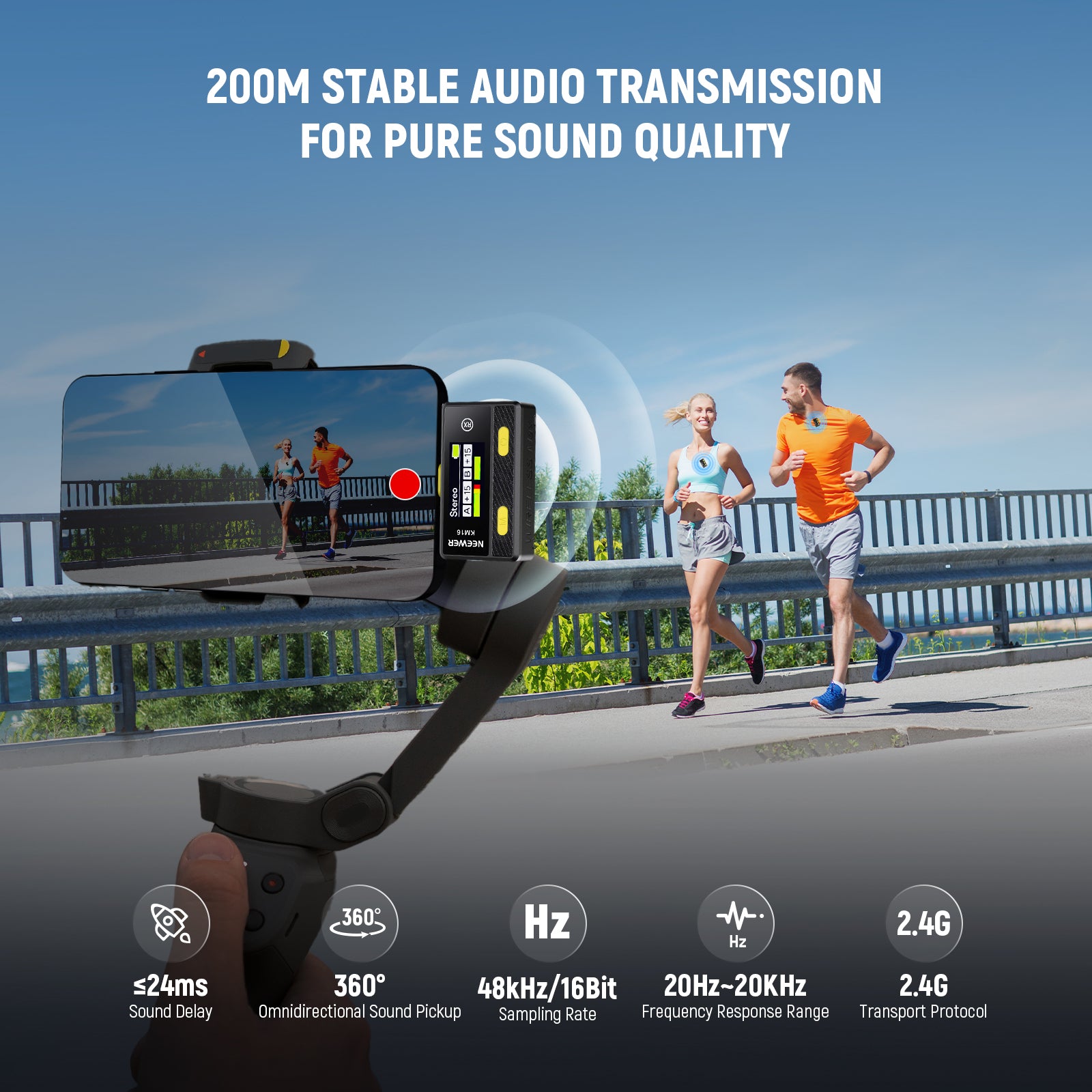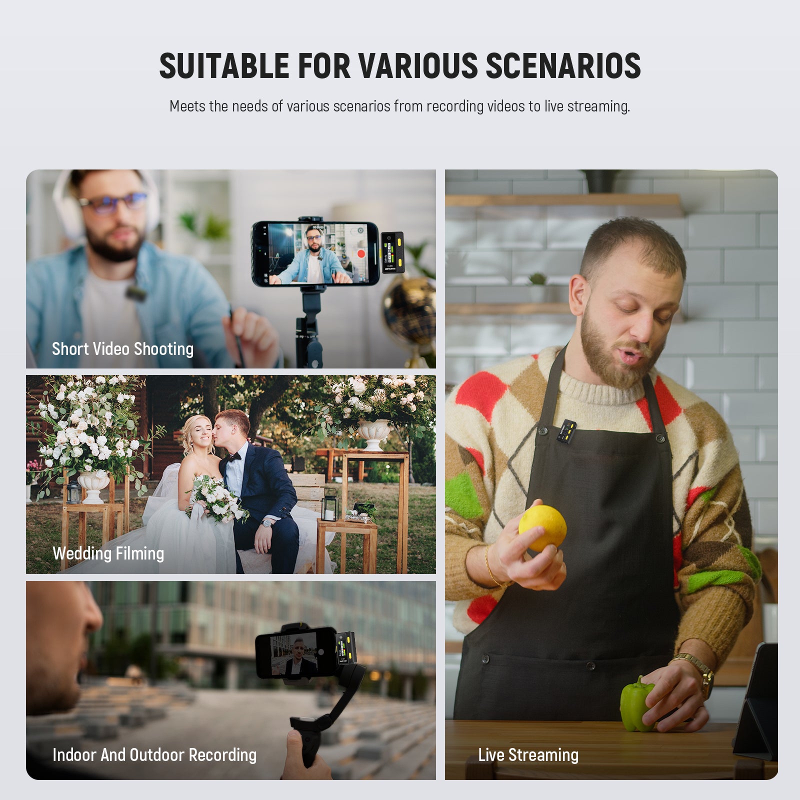 Diseño portátil : cada micrófono inalámbrico pesa solo 16 g/0,6 oz, lo que no ocupa mucho espacio en el equipaje. Este conjunto de micrófono corporal es fácil de transportar y compacto para viajar, lo que brinda una gran comodidad para el trabajo de grabación al aire libre.