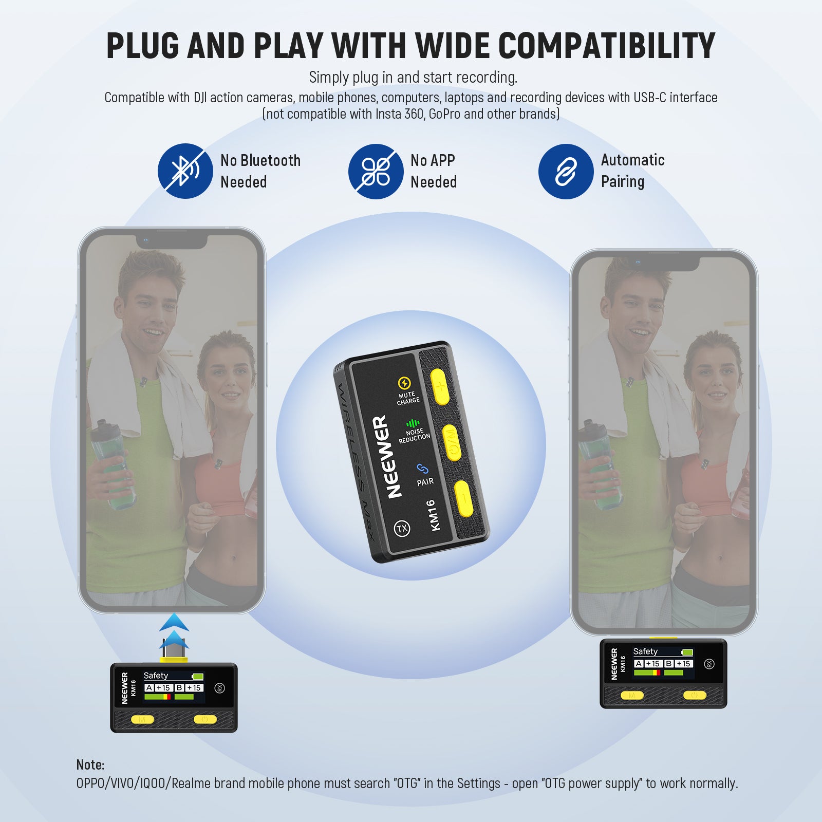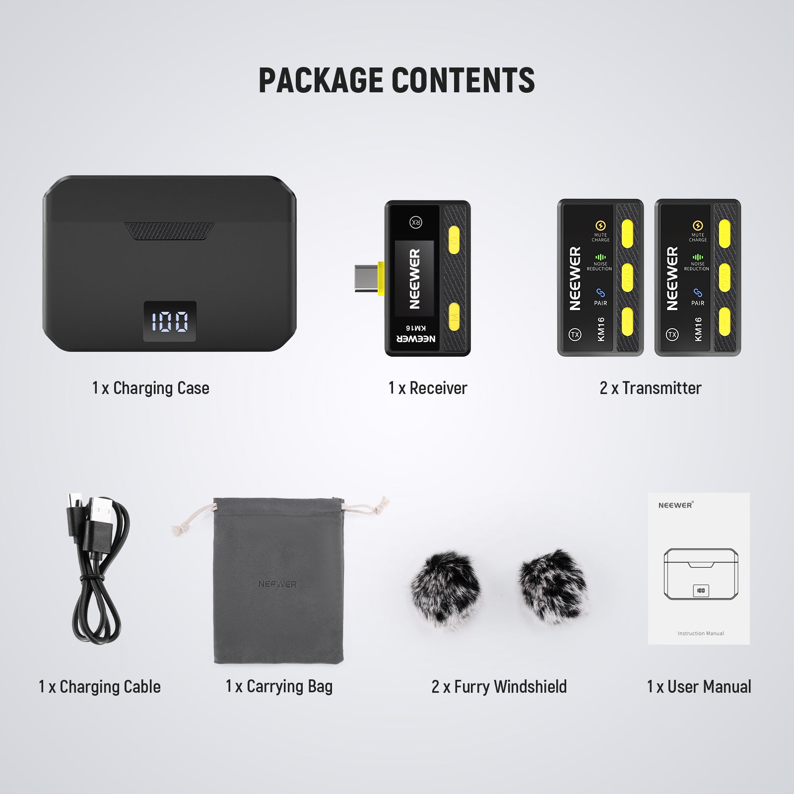 Micrófono de solapa inalámbrico NEEWER KM16 para teléfono tipo C