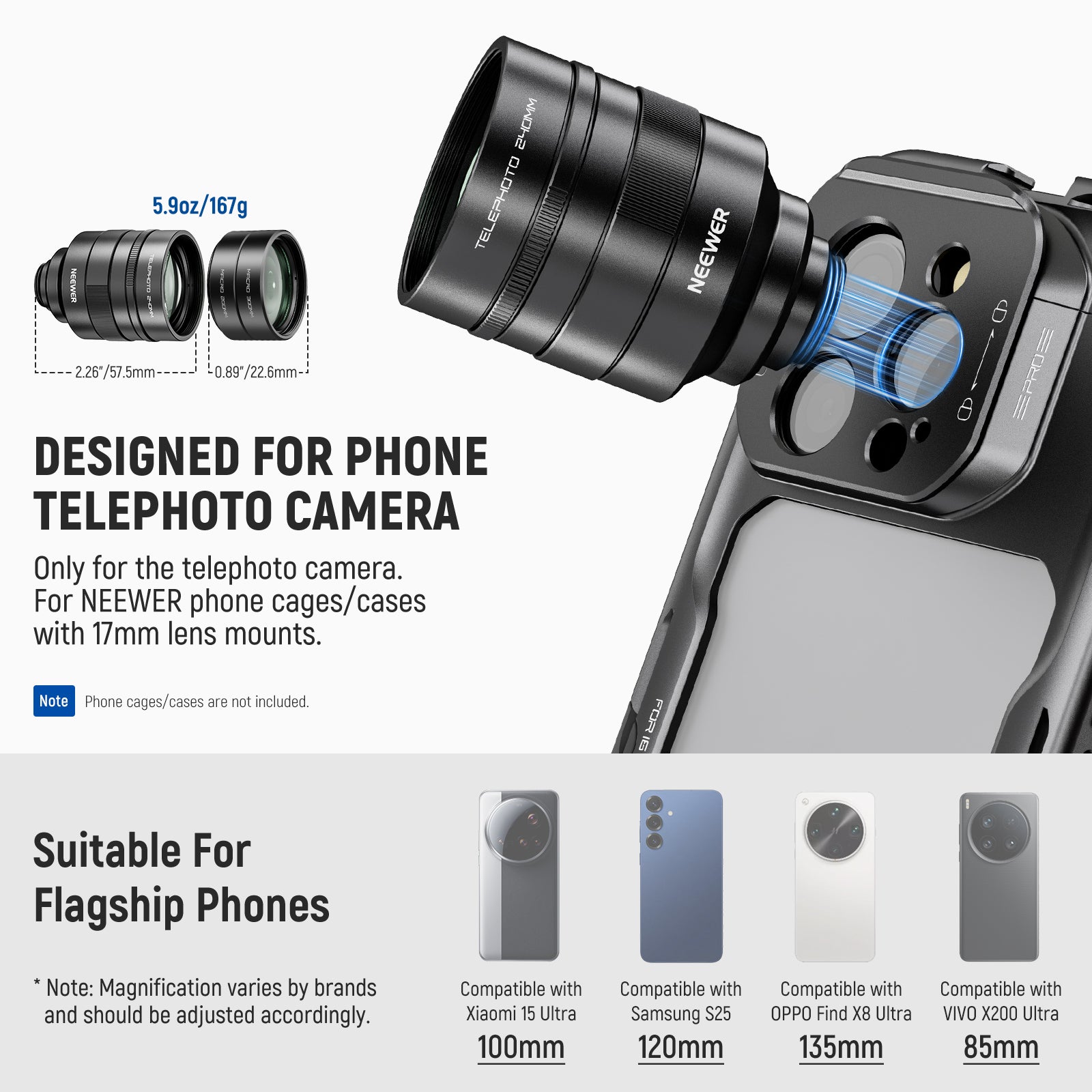 Convertidor NEEWER LS-79 2X 240 mm con clip para lente de cámara telefoto de teléfono