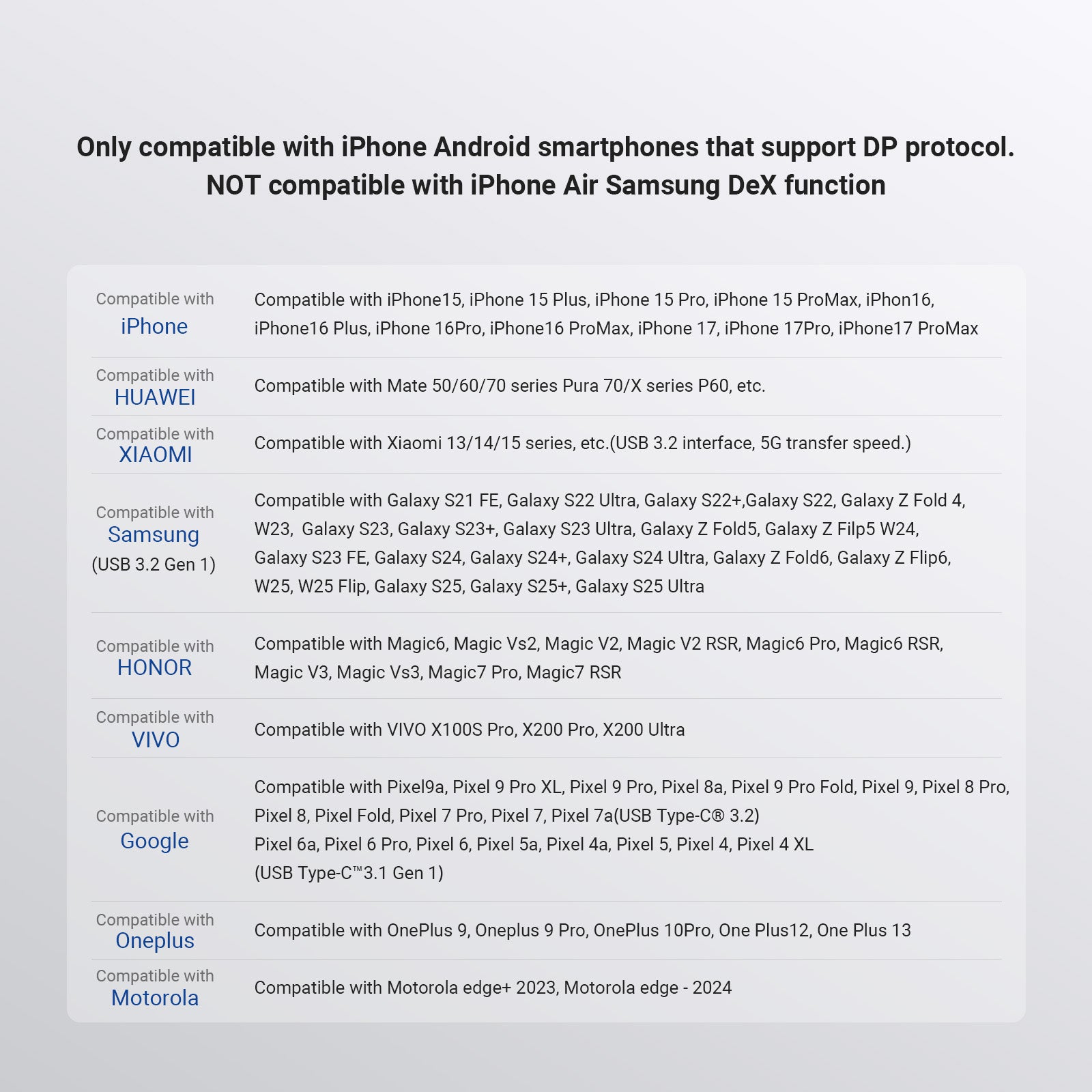Fijación magnética : El mini monitor de espejo para cámara trasera, como accesorio para grabar vlogs con teléfono, garantiza una fijación segura para grabar videos y tomar fotografías de forma estable. Compatible solo con iPhone y Android con protocolo DP. No compatible con iPhone Air 16e ni con la función Samsung DeX.