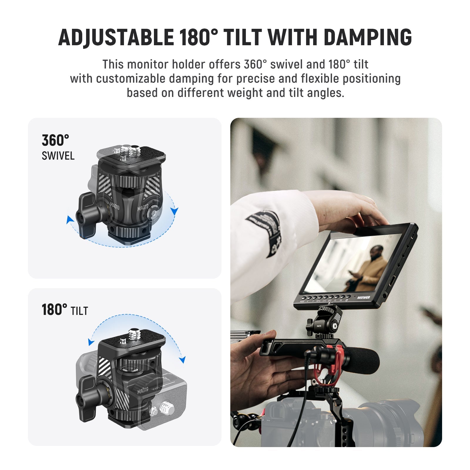 NEEWER MA019 Soporte para monitor de cámara con zapata fría, giro de 360°, inclinación de 180°