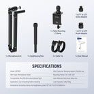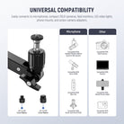 - Sistema multieje suave y flexible : con articulación de cinco ejes, el soporte para micrófono de mesa gira 360° horizontalmente en la base, gira 360° e inclina 150° en la articulación, y gira 360° e inclina 180° en la parte superior, moviéndose sin ruidos molestos que puedan interrumpir la transmisión. El brazo del micrófono de mesa se extiende hasta 83 cm cuando está completamente extendido, con cada brazo de 35 cm de largo, adaptándose a diversas alturas y ángulos.