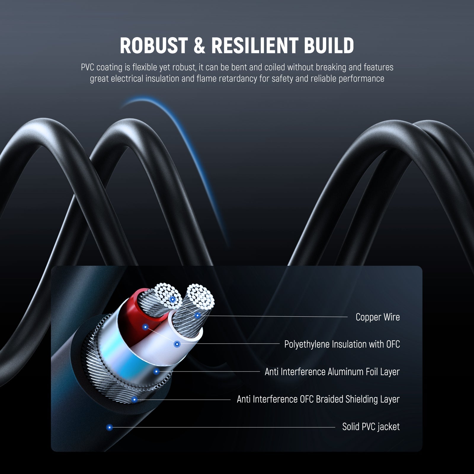 - Construcción robusta y resistente : el revestimiento de PVC es flexible pero robusto, se puede doblar y enrollar sin romperse y presenta un excelente aislamiento eléctrico y resistencia al fuego para mayor seguridad y un rendimiento confiable.
