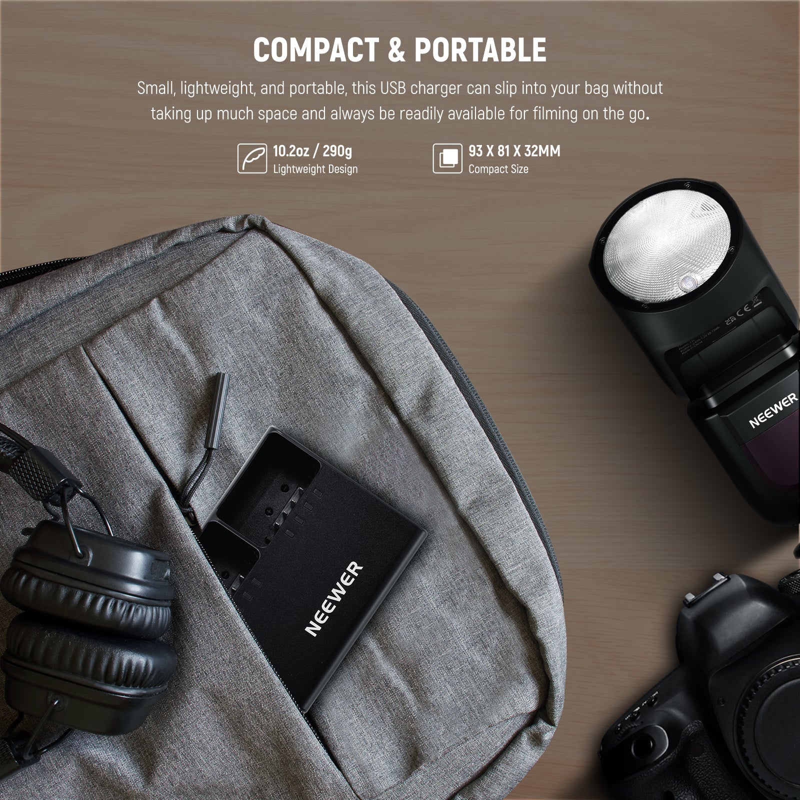 - Exclusivo para flashes Speedlite Z1/Z2/Z760/Z880 : este cargador USB dual está diseñado exclusivamente para cargar baterías recargables de 7,4 V/2600 mAh para las series de flashes Speedlite NEEWER Z1, Z2, Z760 y Z880, compatibles con cámaras Sony Nikon Canon.