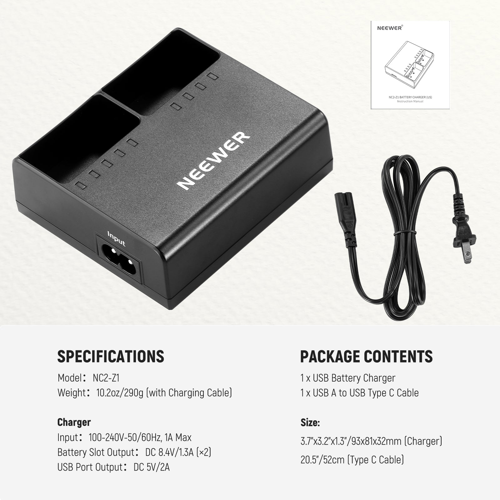 Kit de cargador de batería de doble ranura NEEWER NC2-Z1 para Z2 Z1 Z760 Z880