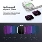 - Vidrio óptico multicapa : ofrece imágenes nítidas con una reproducción cromática precisa, además de ser resistente al agua, las huellas dactilares y los arañazos. Incluye un paño de limpieza y un estuche portátil.