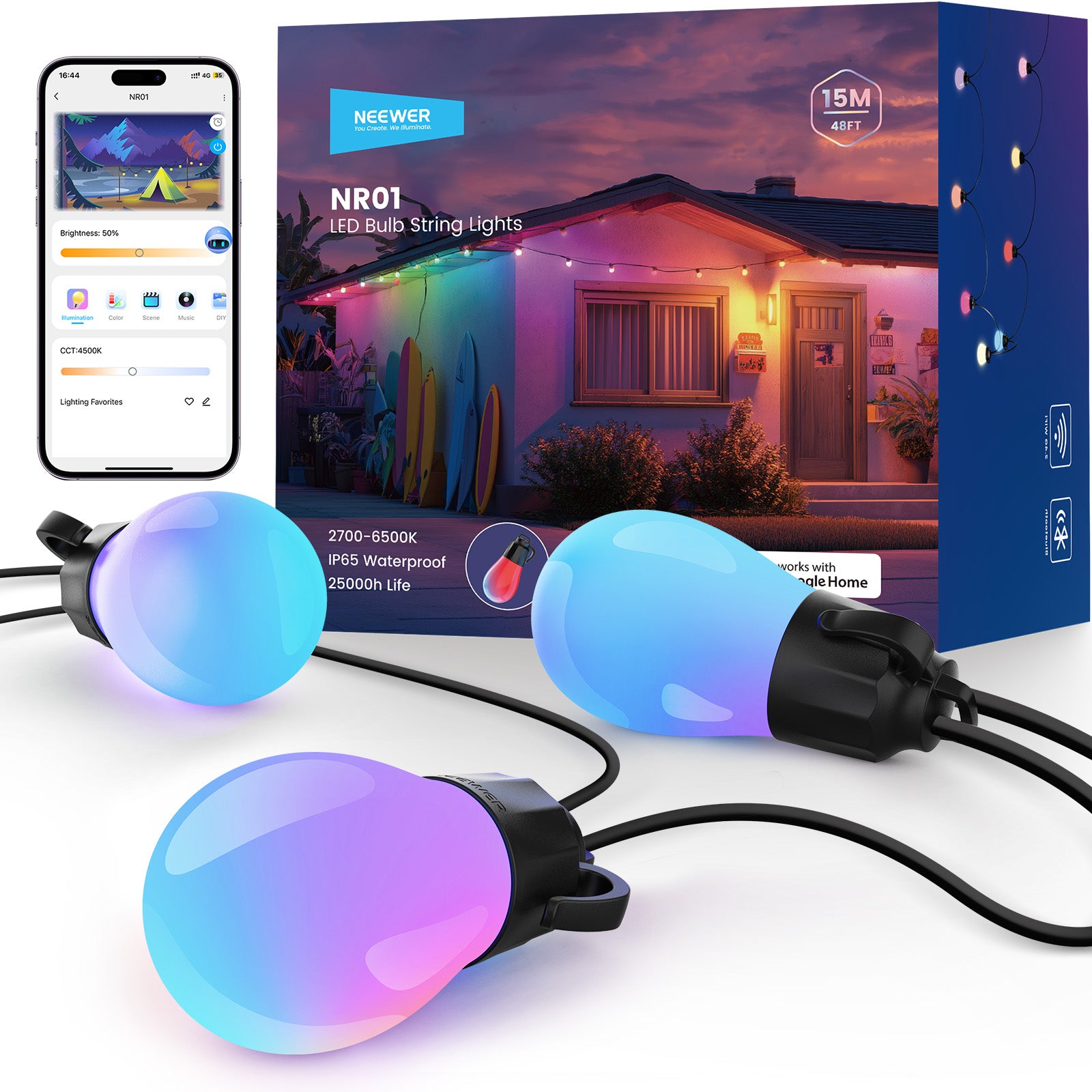 - Aplicación inalámbrica y control de voz inteligente : Conéctala por Bluetooth a la aplicación NEEWER Home para disfrutar de un control de iluminación completo y eficiente. También puedes ajustar el brillo o cambiar de modo rápidamente con la caja de control incluida. Además, compatible con el Asistente de Google Alexa, la guirnalda de luces LED inteligentes para exteriores se controla desde dispositivos inteligentes mediante comandos de voz sencillos. Nota: SOLO compatible con routers o puntos de acceso Wi-Fi de 2,4 GHz; NO compatible con redes de 5 GHz.