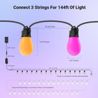 - Dos opciones de instalación : La cadena de luces cuenta con orificios y ganchos para colgar, lo que permite una instalación rápida y sencilla sin necesidad de herramientas profesionales. Fije fácilmente las bombillas a través de los orificios con las bridas incluidas para que no se muevan. Nota: Se pueden conectar hasta 3 cadenas (45 m/144 pies).
