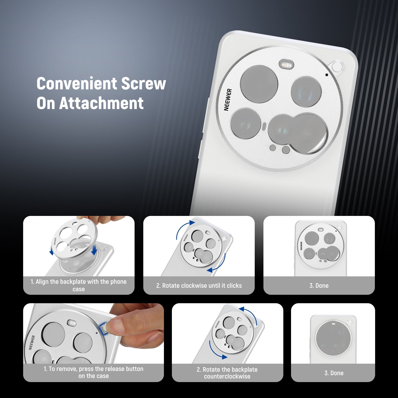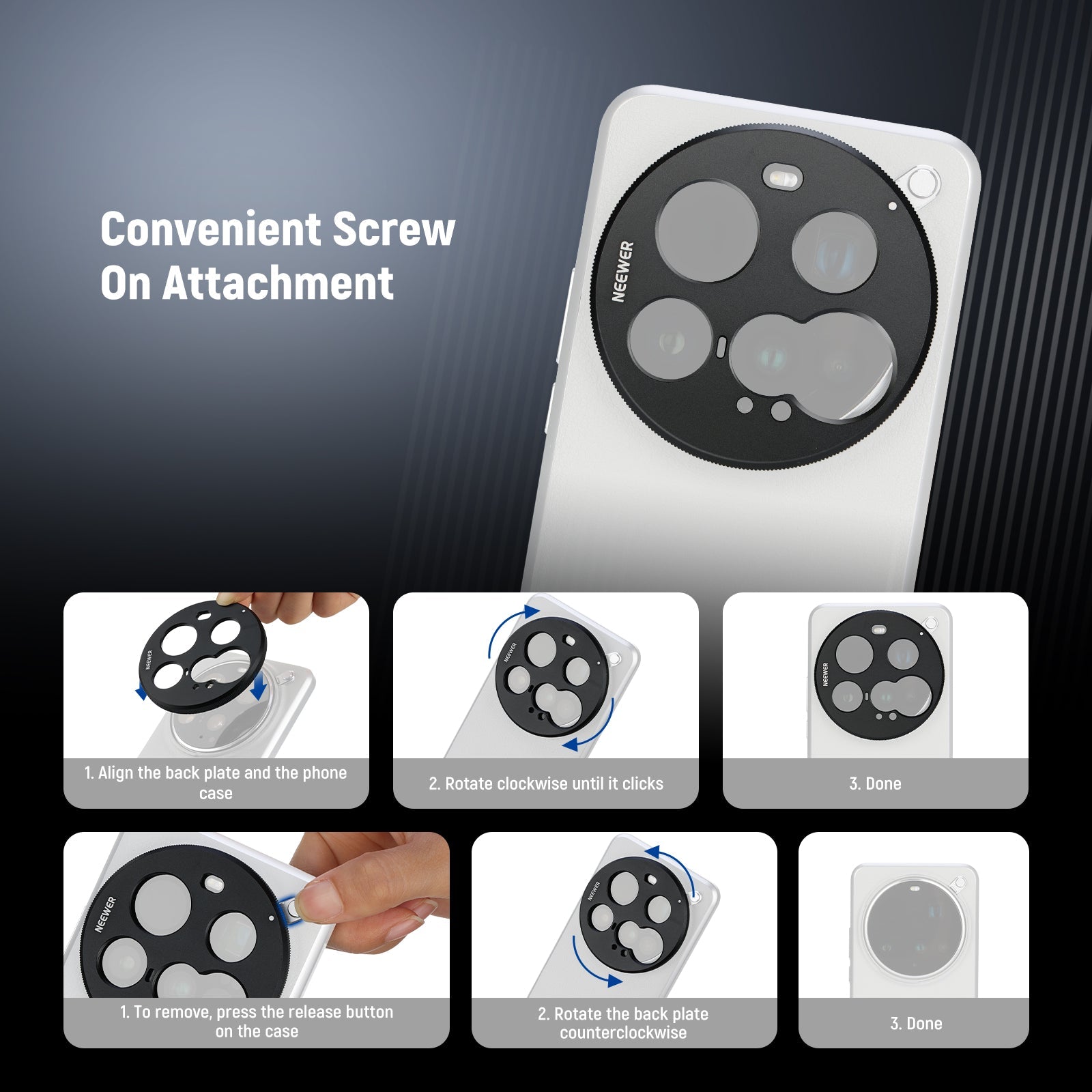 - Compatible with Xiaomi 15 Ultra- Exclusively compatible with Xiao Mi 15 Ultra Original Phone Case, this lens backplate mounts 17mm threaded lenses to your phone for professional and creative mobile photography or video recording as content creator essential and influencer must have phone camera accessories. Note: NOT compatible with NEEWER PA091 Phone Cage and PA101 Phone Case for 15 Ultra