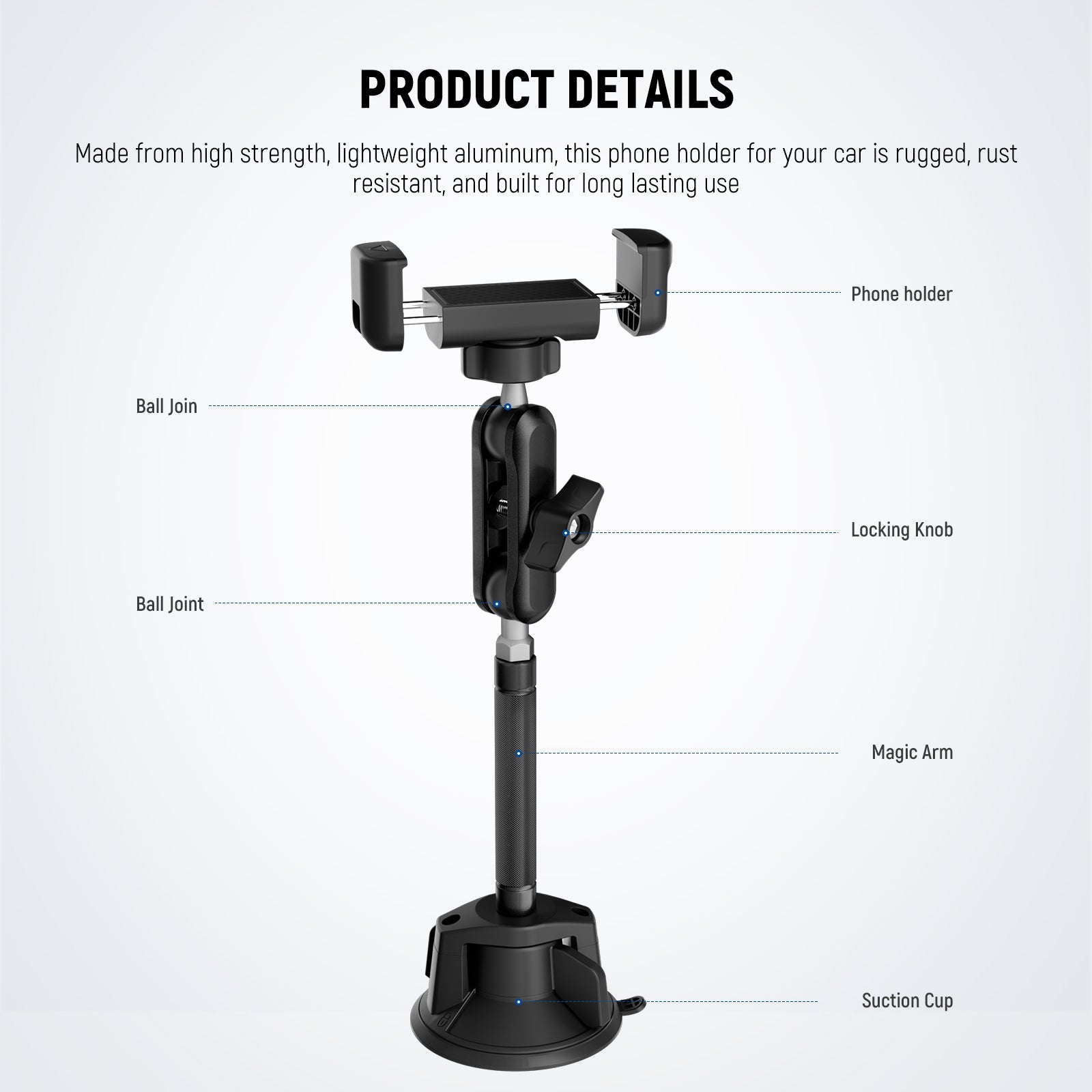 - 1 x Suction Cup Car Phone Holder with Magic Arm