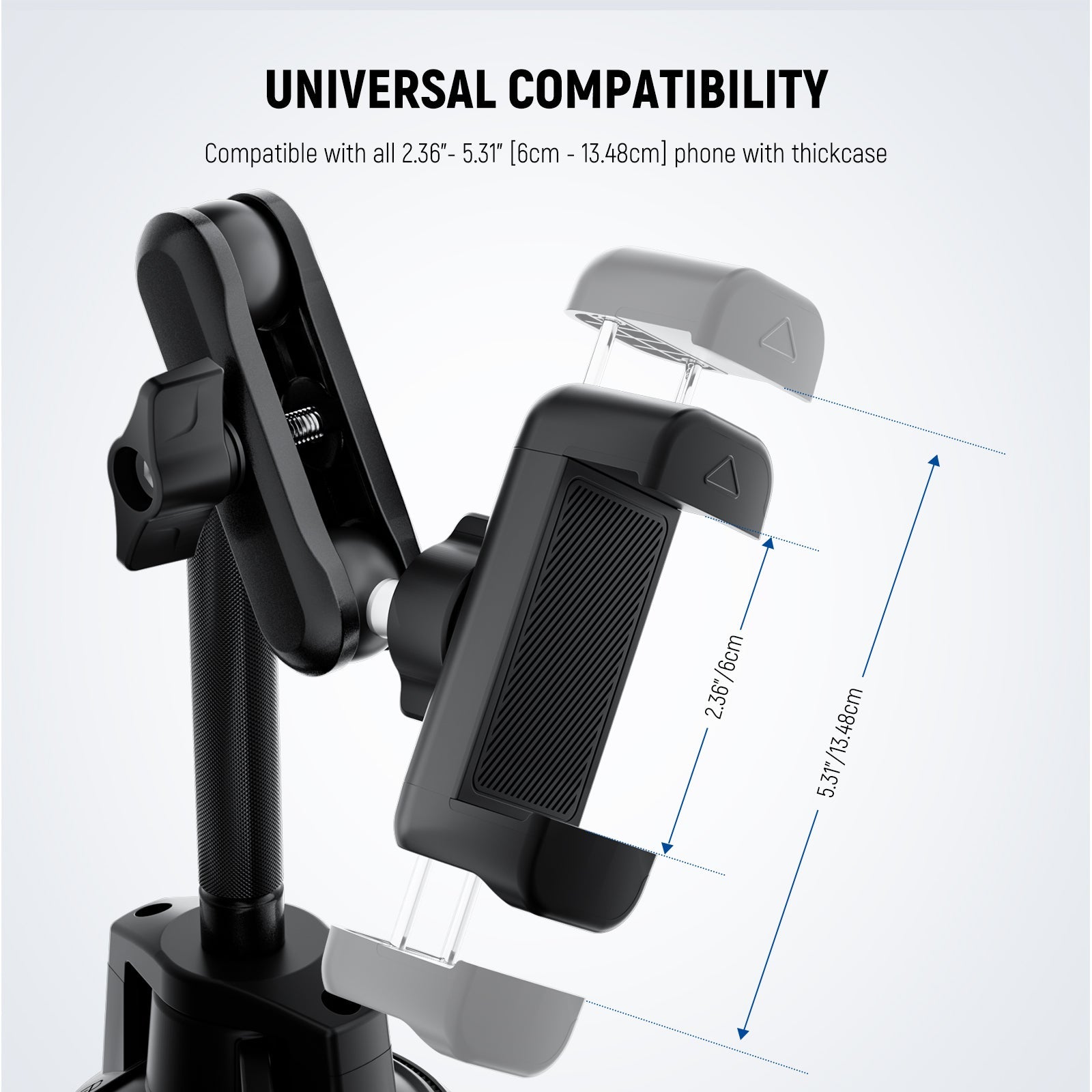 - 360° Rotation & Unobstructed View- The triple ball head system offers flexible positioning for height and angle, with quick switching between portrait and landscape modes while keeping your line of sight unobstructed. Metal knobs securely lock the joints