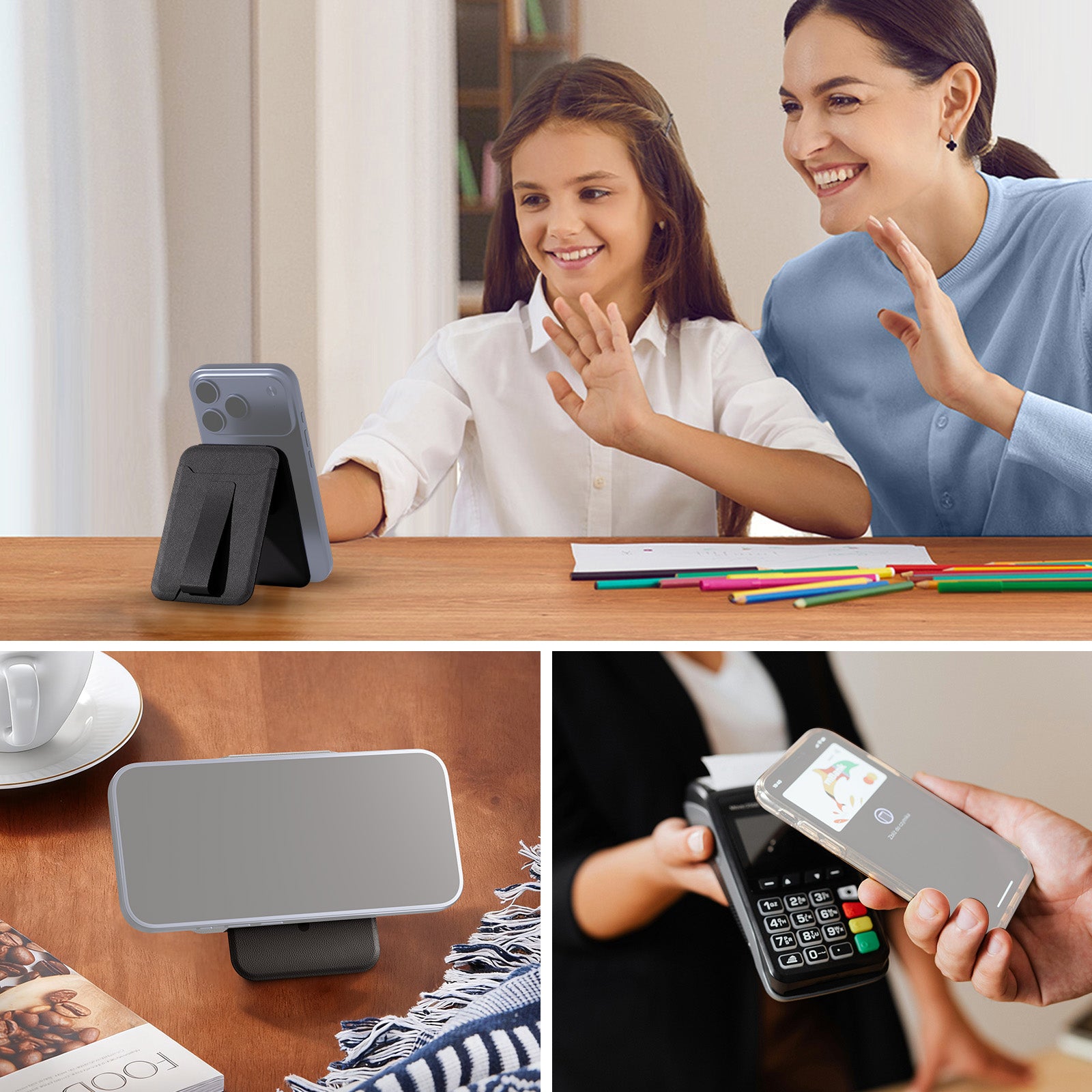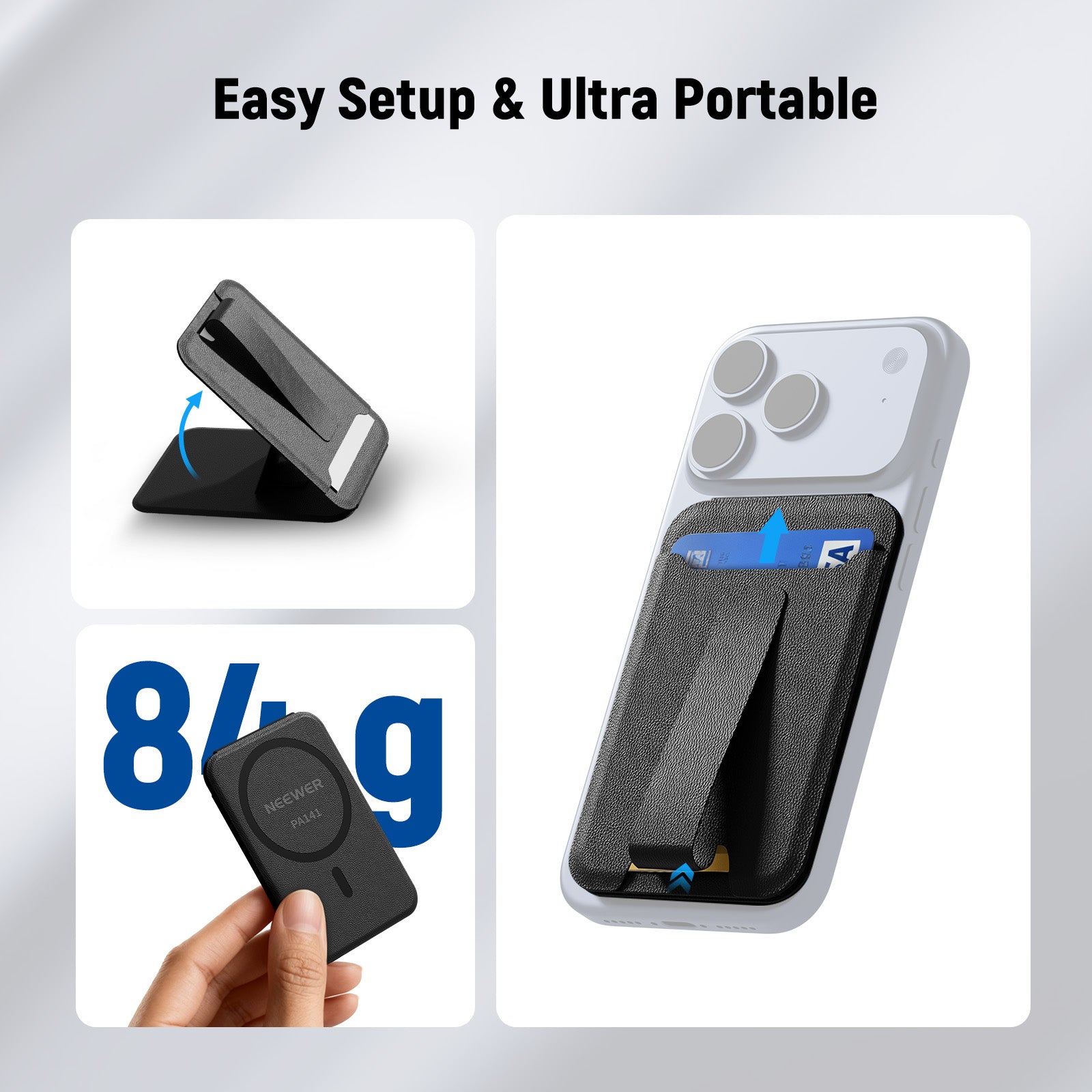 - Fácil de instalar y ultraportátil : El soporte magnético para teléfono de escritorio, con un diseño de origami, se despliega en segundos para grabar videos con la cámara en mano o con trípode. Con un peso de 57 g (2 oz), cabe en el bolsillo para viajes en avión.