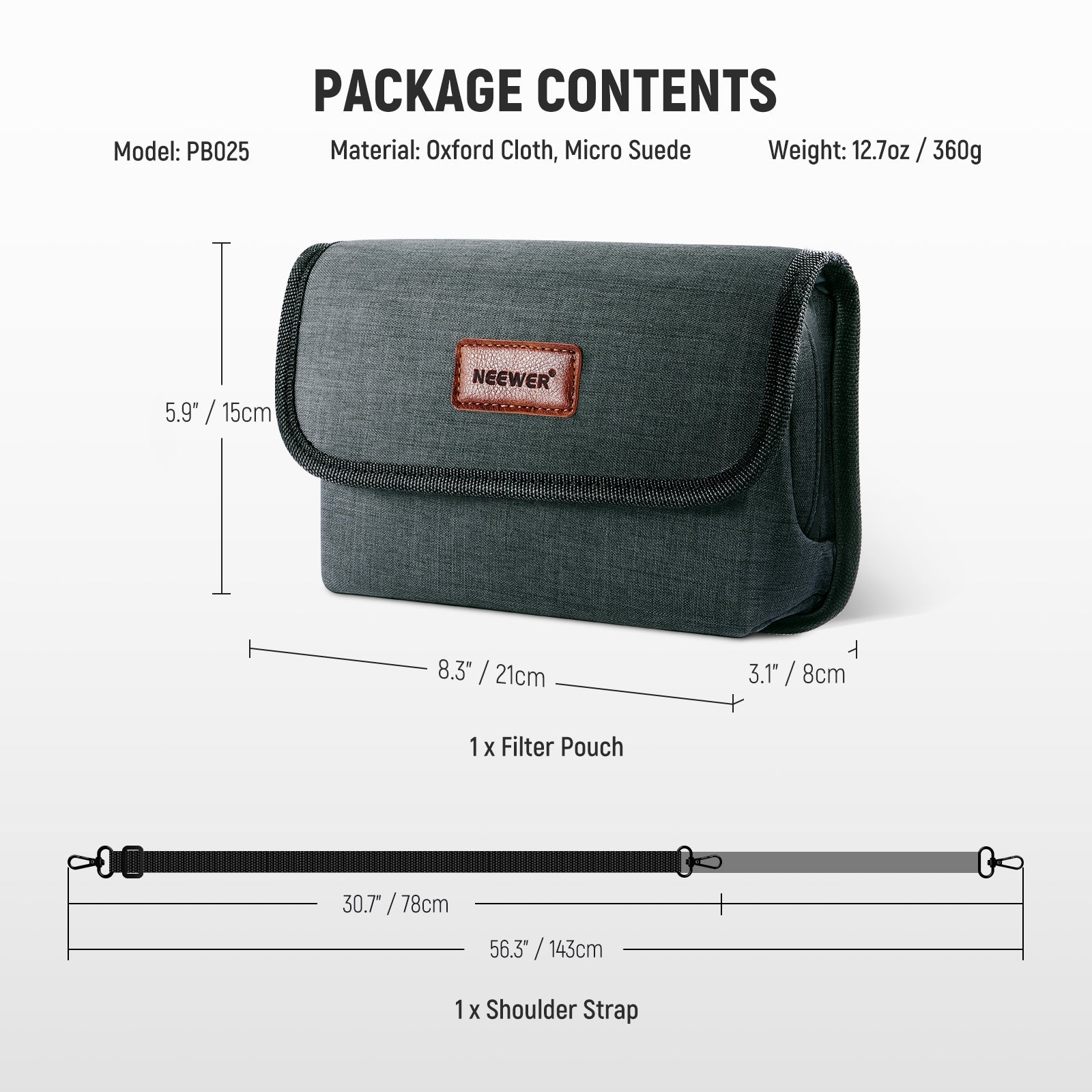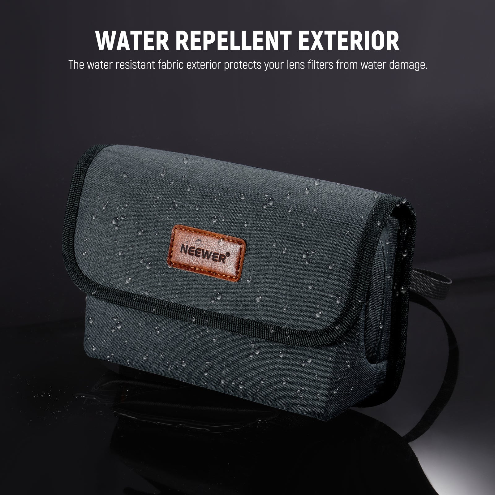 - Bolsa de transporte y almacenamiento de filtros profesional : la funda rígida para filtros de lentes de cámara NEEWER con correa para el hombro destaca para proteger sus valiosos filtros de lentes. Hecha de material resistente y resistente al agua, esta bolsa es duradera para almacenar y transportar, ideal para filtros cuadrados de 4'' x 4'' o 4'' x 5,65'' o circulares de 95 mm.
