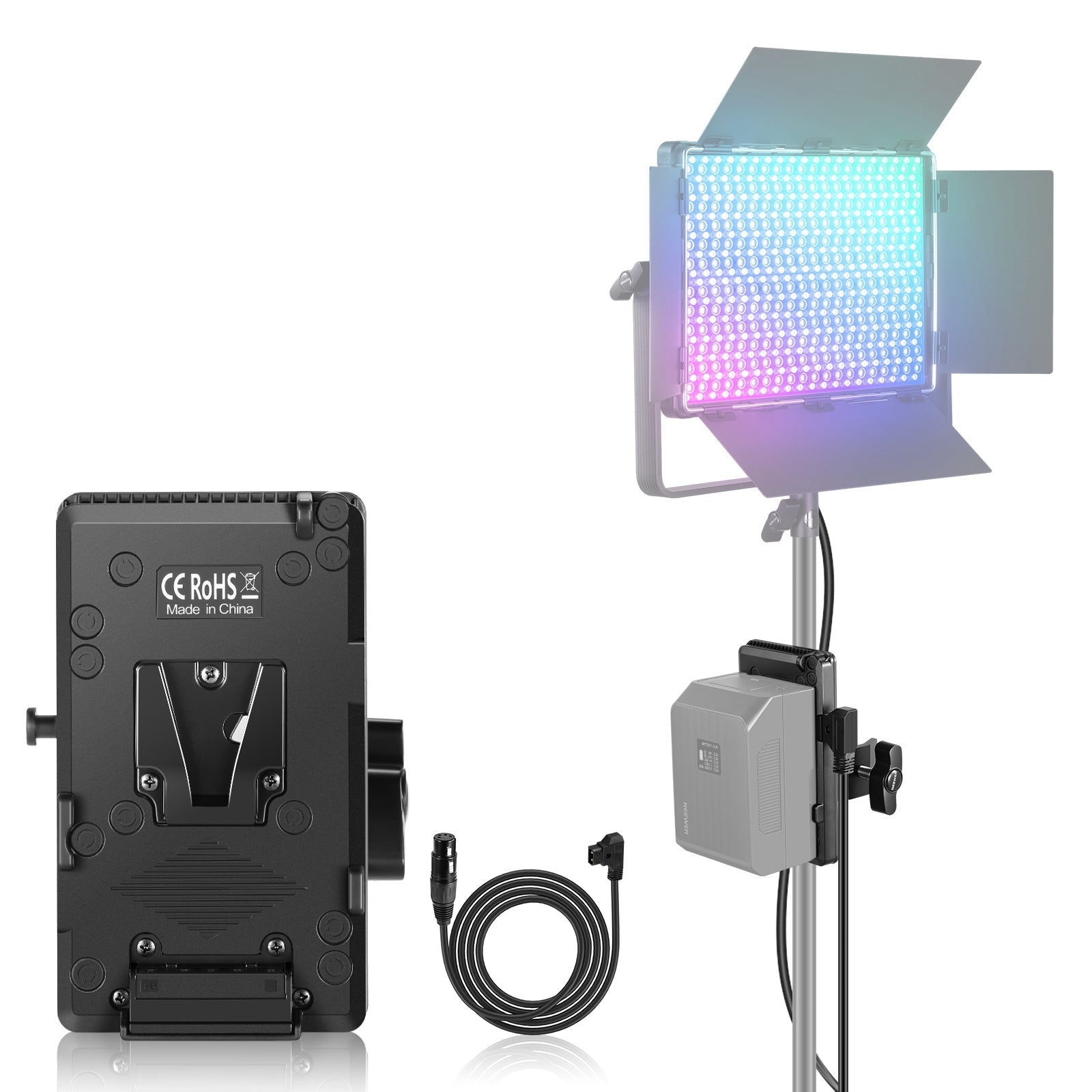- La placa de batería de montaje en V universal PS008 K3 es una solución de suministro de energía de batería de montaje en V diseñada para la serie FS de NEEWER Light. Compatible con la batería de montaje en V SmallRig VB99 VB99 Pro VB50 VB155 NEEWER PS099E BP-95W BP-150WS BP-190WS BP-V47 BP-V95 y otras baterías de montaje en V con bloqueo V estándar. Nota: baterías no incluidas