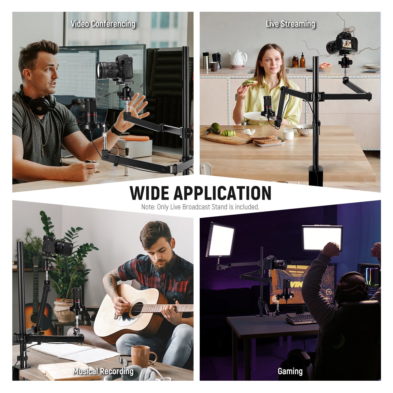 - Configuración organizada y que ahorra espacio : al montar de forma segura su cámara web u otros dispositivos, puede tener las manos libres para concentrarse en la creación de contenido. El soporte, que se suministra con bridas y soportes para llaves hexagonales para organizar, mantiene toda la configuración de transmisión en vivo limpia y ordenada, a la vez que ahorra espacio en el escritorio.